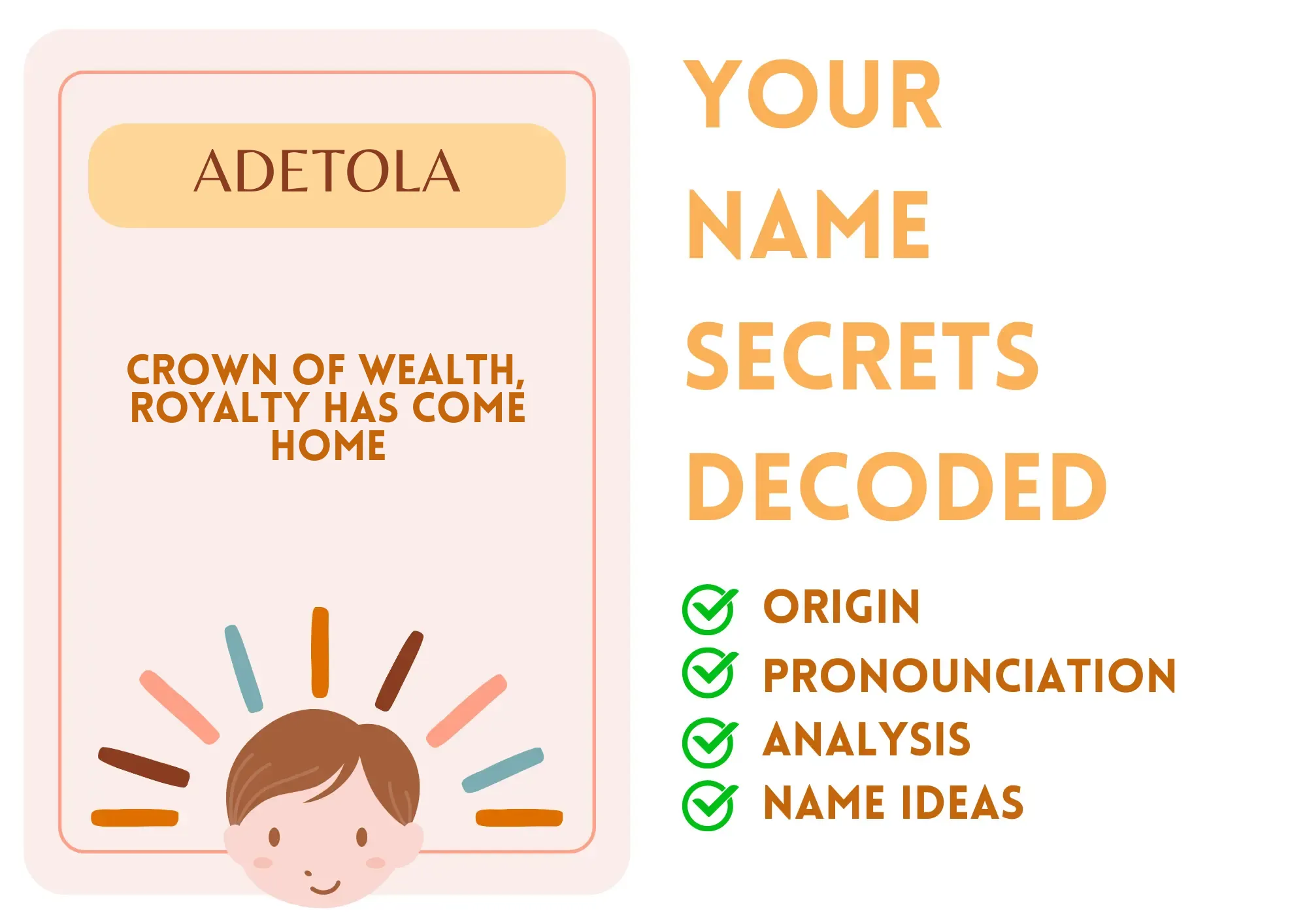 Background: In Yoruba culture, names like Adetola are significant as they reflect attributes, hopes, or circumstances surrounding a child's birth. They are believed to influence the individual's destiny and identity.