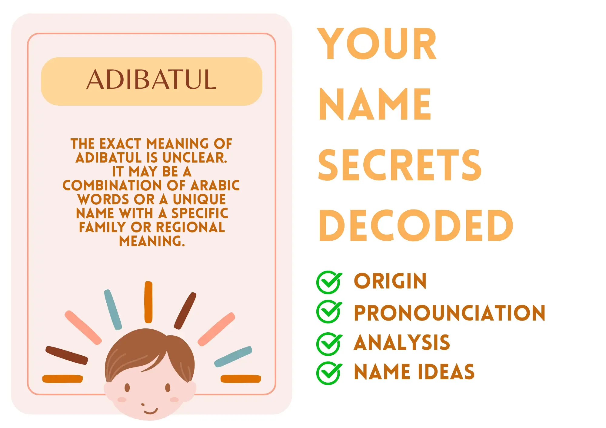 Origin: The name Adibatul is likely of Arabic origin, but its specific origins and meaning are not widely documented.