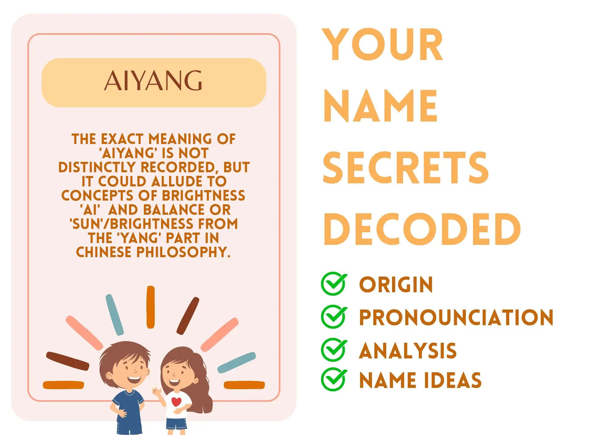 Origin: Aiyang appears to derive from Chinese influences, particularly the 'yang' component which is integral in Chinese philosophy as part of yin-yang representing harmony and balance.