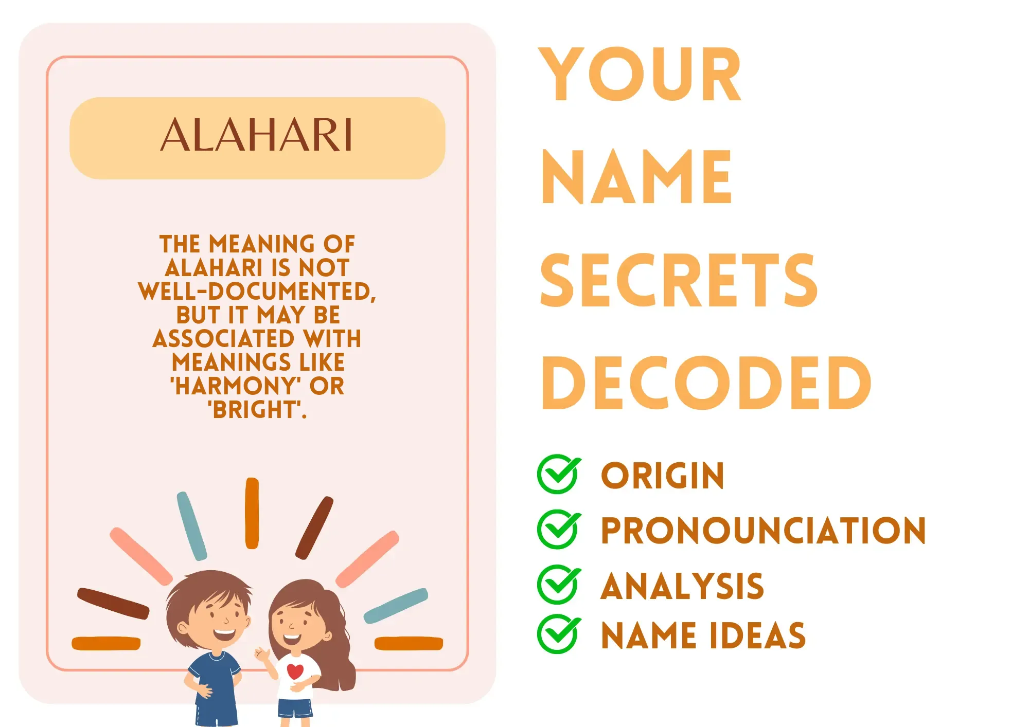 Meaning: The meaning of Alahari is not well-documented, but it may be associated with meanings like 'harmony' or 'bright'.