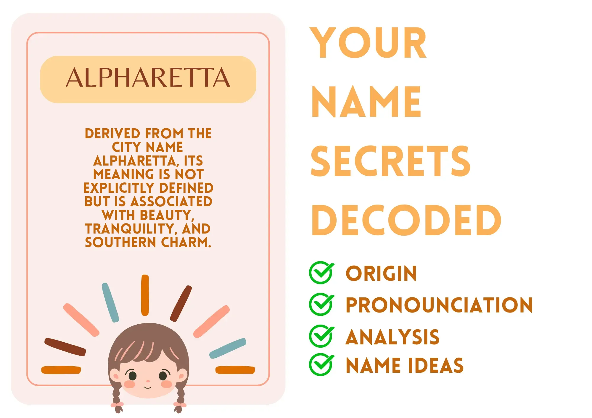 Usage: Alpharetta is a feminine name, commonly used for girls to evoke a sense of grace and refinement.