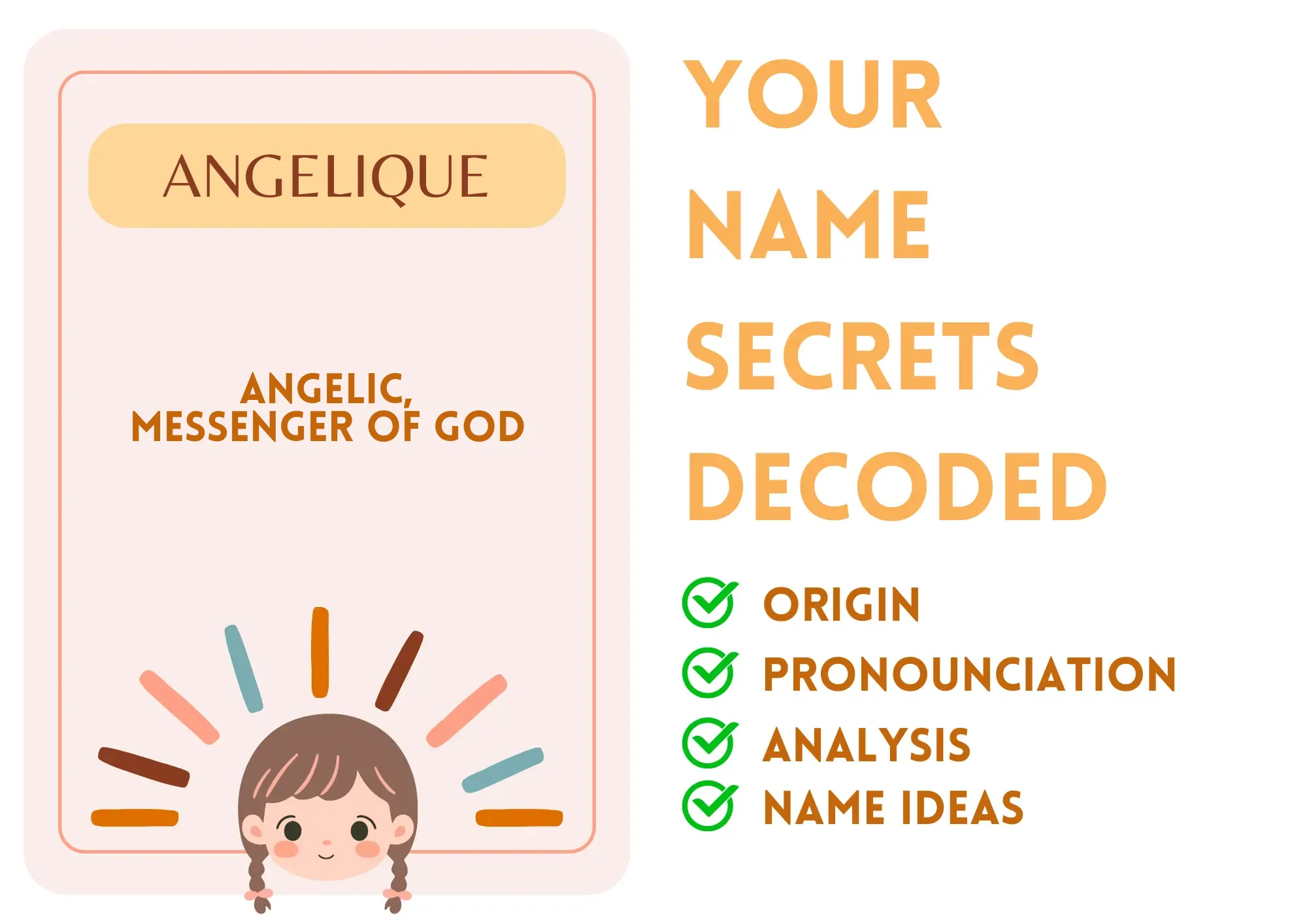 Background: The name Angelique has strong ties to Christianity, as it references angels and divine messengers. It is often associated with purity, innocence, and spiritual connection.