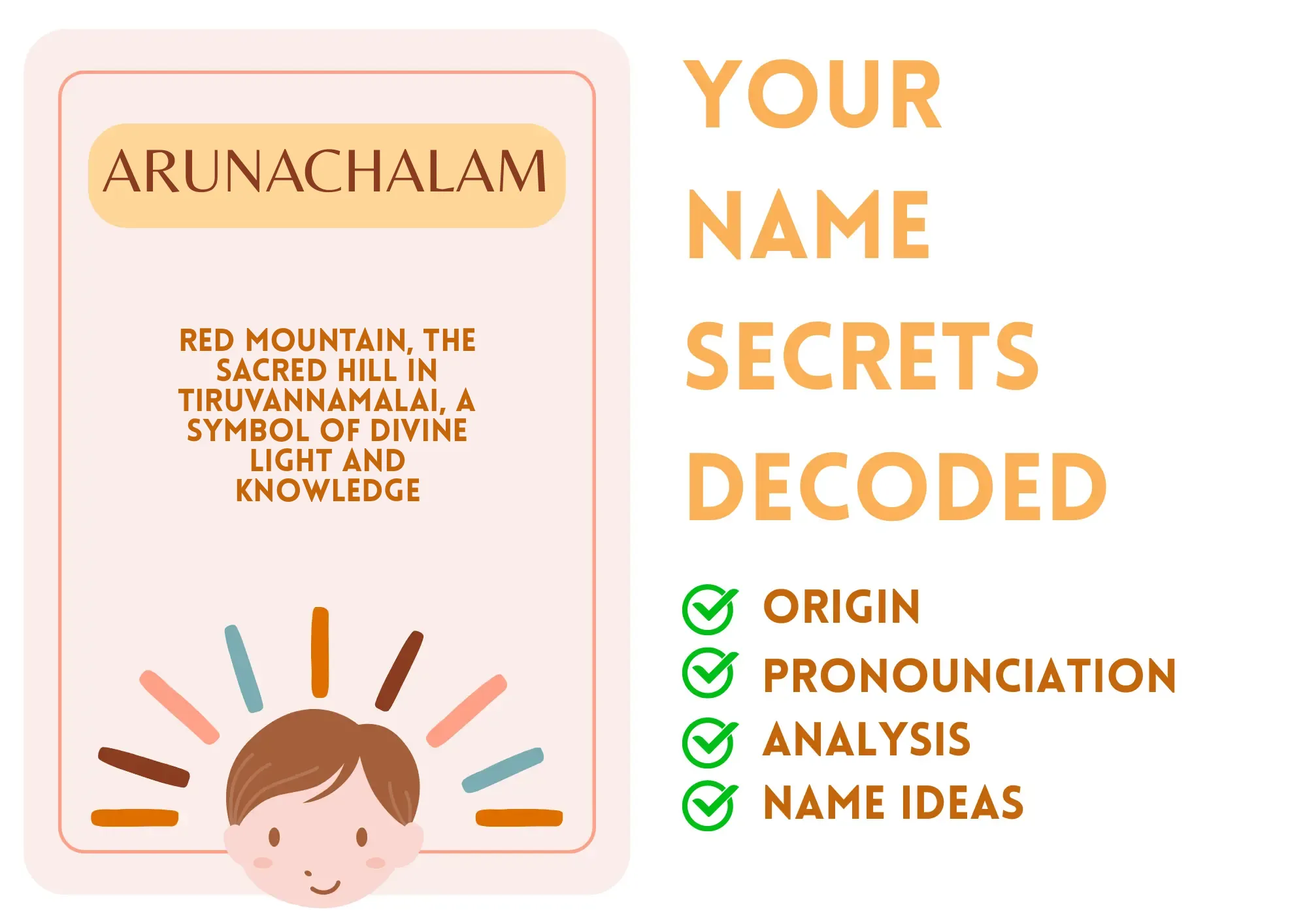 Origin: The name Arunachalam is of Tamil origin, originating from the sacred hill in Tiruvannamalai, Tamil Nadu, India.