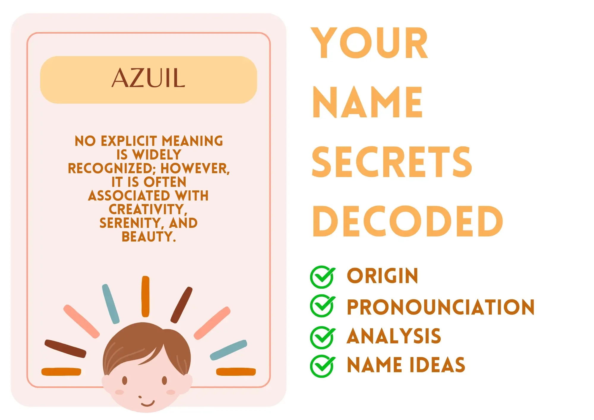 Origin: The name Azuil does not have a clear cultural or linguistic origin but is considered a modern, creative name choice.