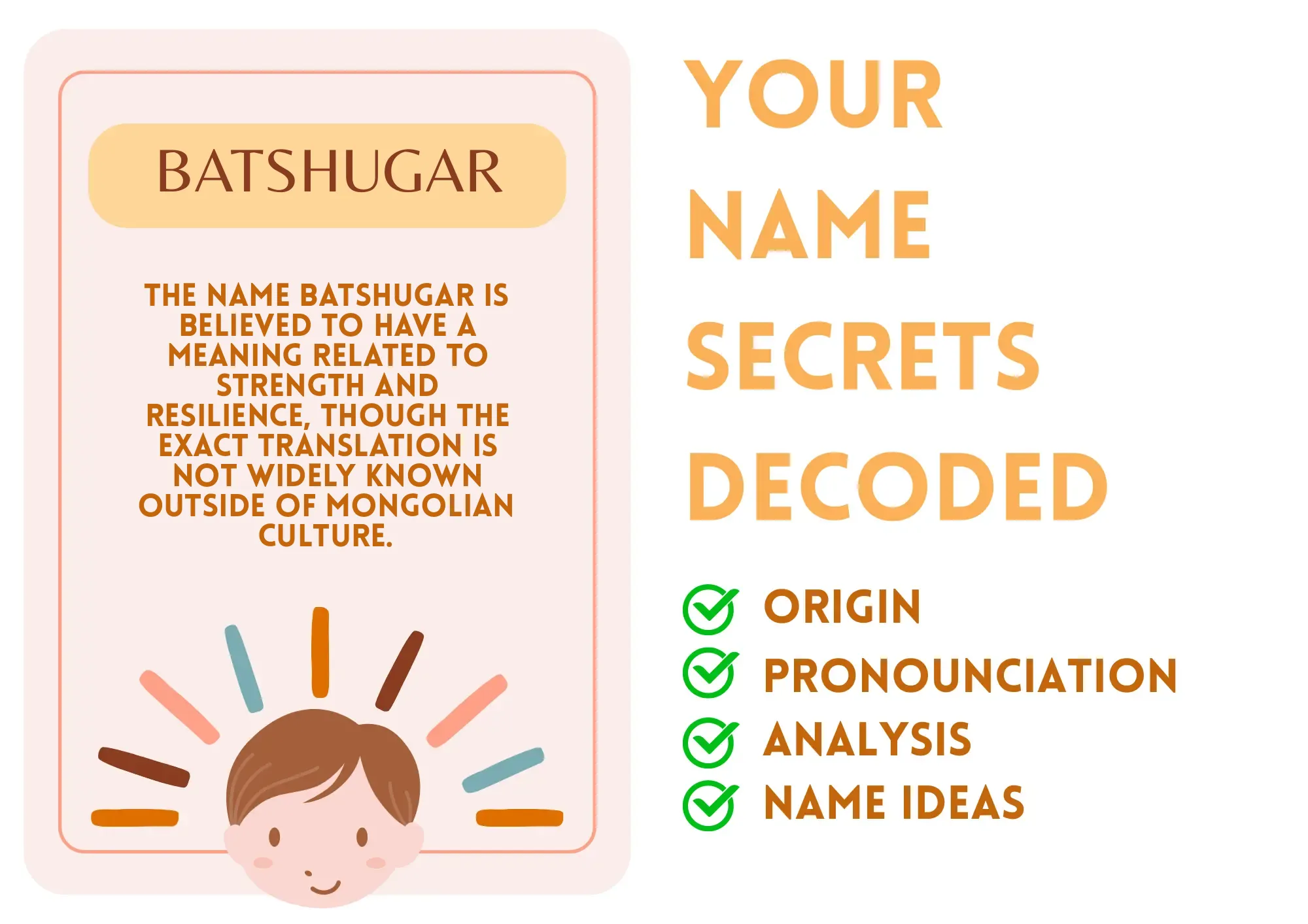 Background: Batshugar is a name that is often associated with Mongolian culture and tradition. It is not specifically tied to any particular religion, but it is a name that is frequently used among Mongolian people.