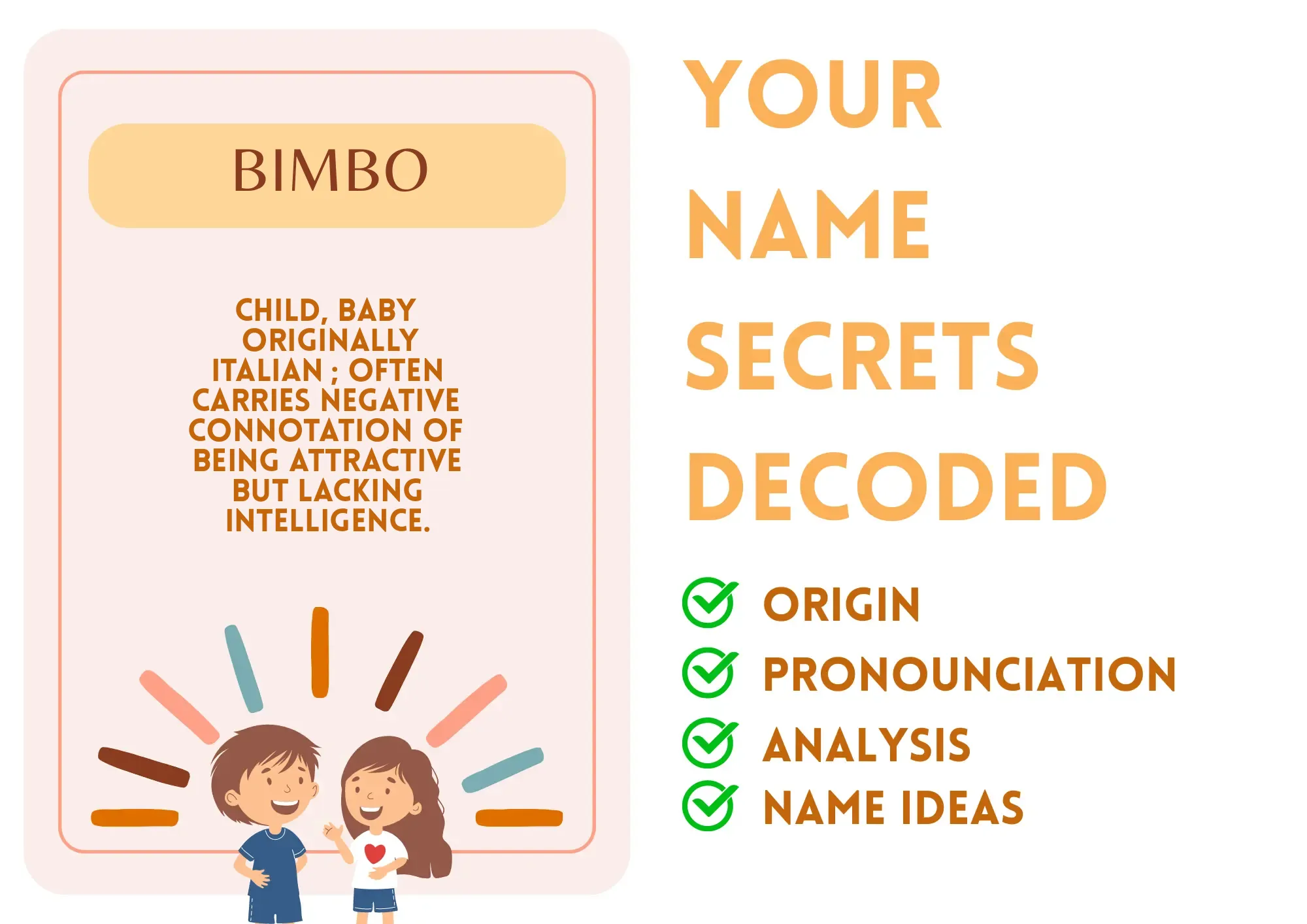 Perception: Perceptions of the name Bimbo are mixed; while some might find it playful or cute, many perceive it negatively due to its derogatory connotations in contemporary slang.