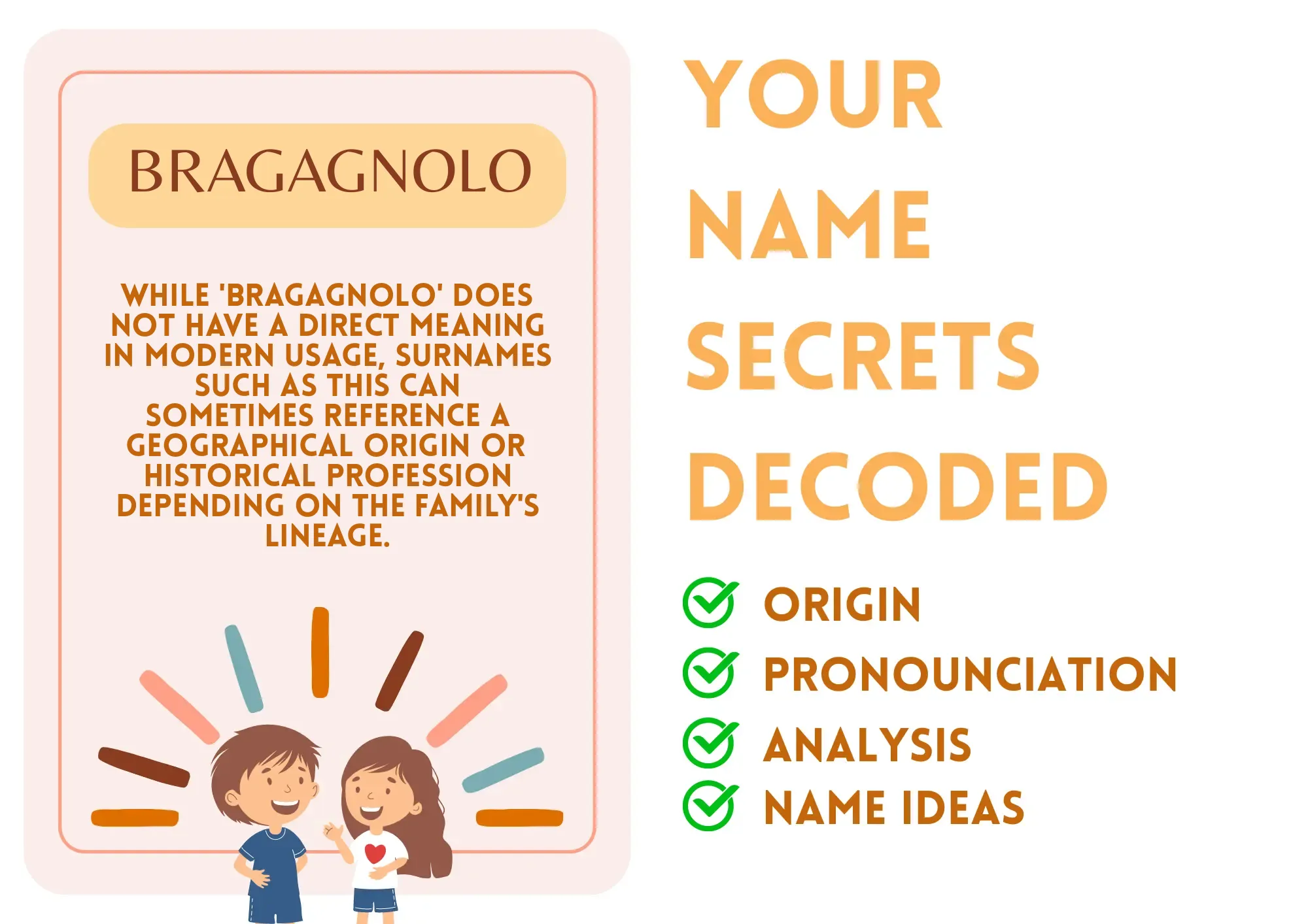 Usage: Although traditionally seen as masculine in its surname form, Bragagnolo can be used for any gender, especially with modern naming trends valuing uniqueness.