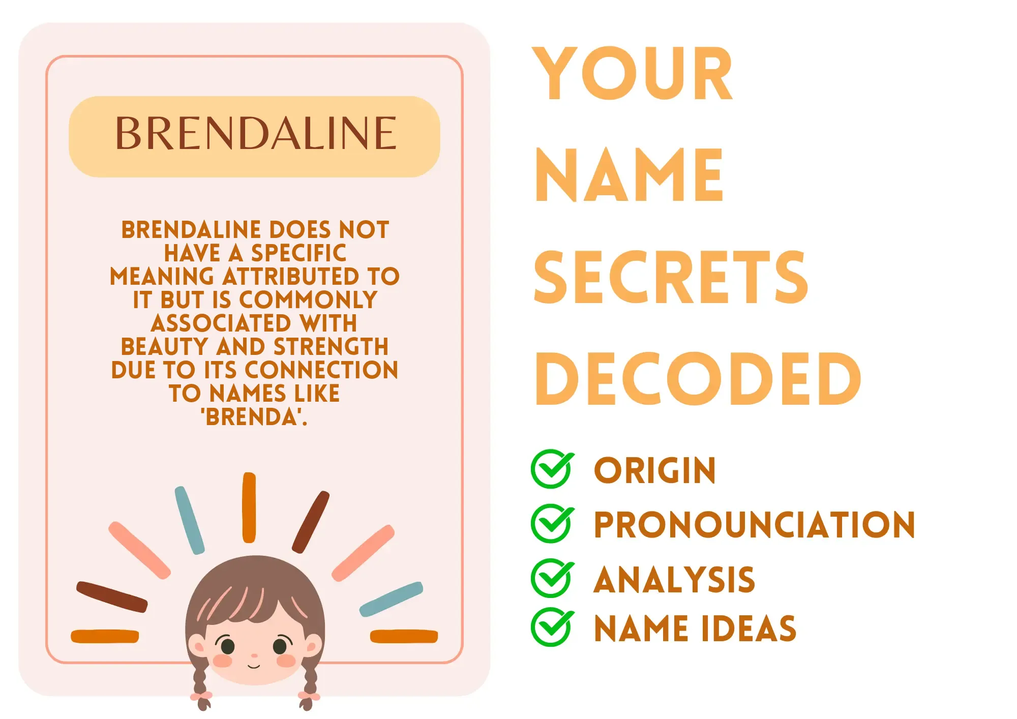Meaning: Brendaline does not have a specific meaning attributed to it but is commonly associated with beauty and strength due to its connection to names like 'Brenda'.