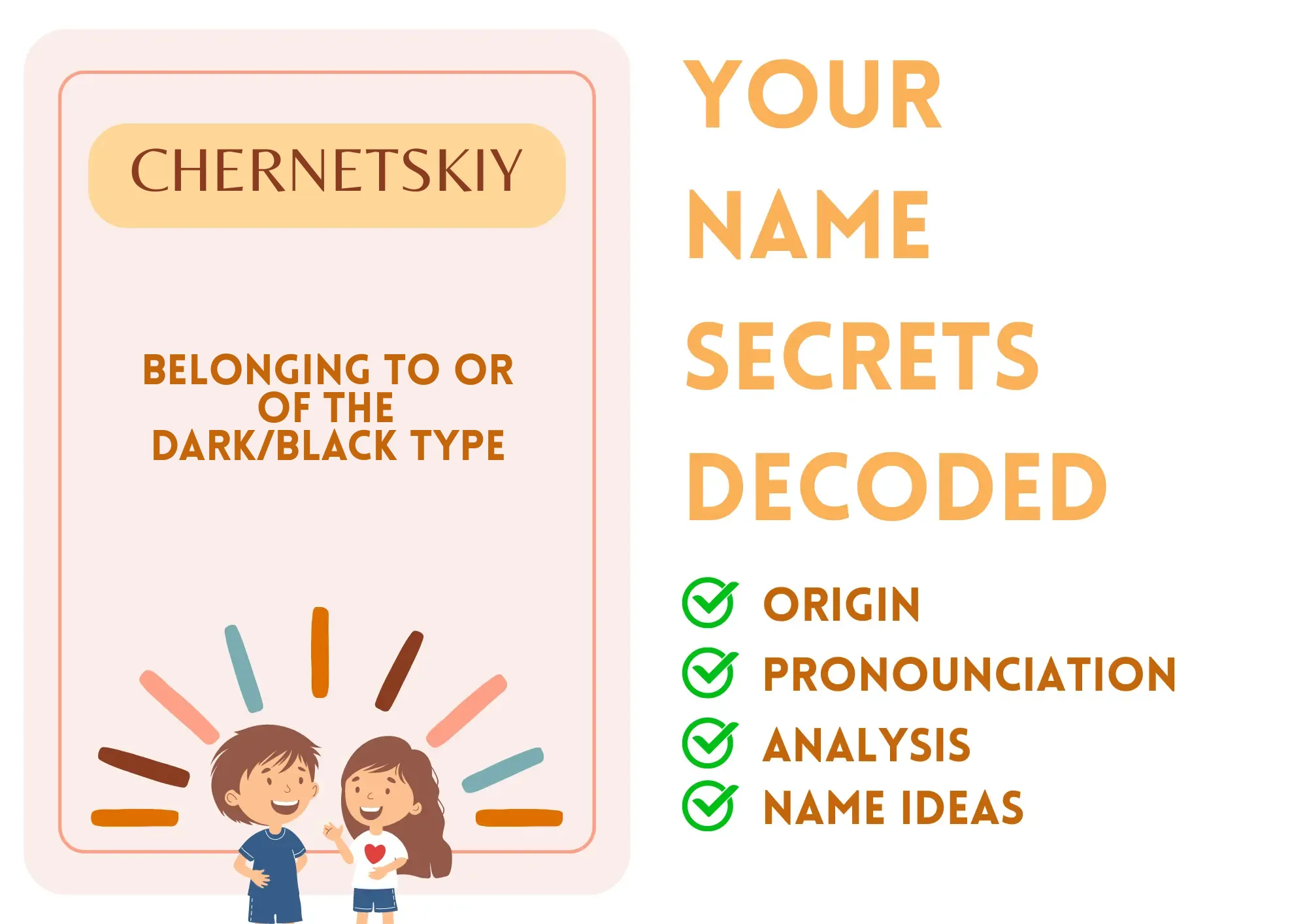 Chernetskiy is a surname of Slavic origin, particularly associated with Russian and Ukrainian heritage. The name is derived from the word 'chorny', meaning 'black', 'dark', or 'swarthy'. Although primarily a surname, it has the potential to be used as a given name, particularly in contexts where Slavic names are celebrated. Chernetskiy carries connotations of mystery and depth, reflective of its etymological roots.