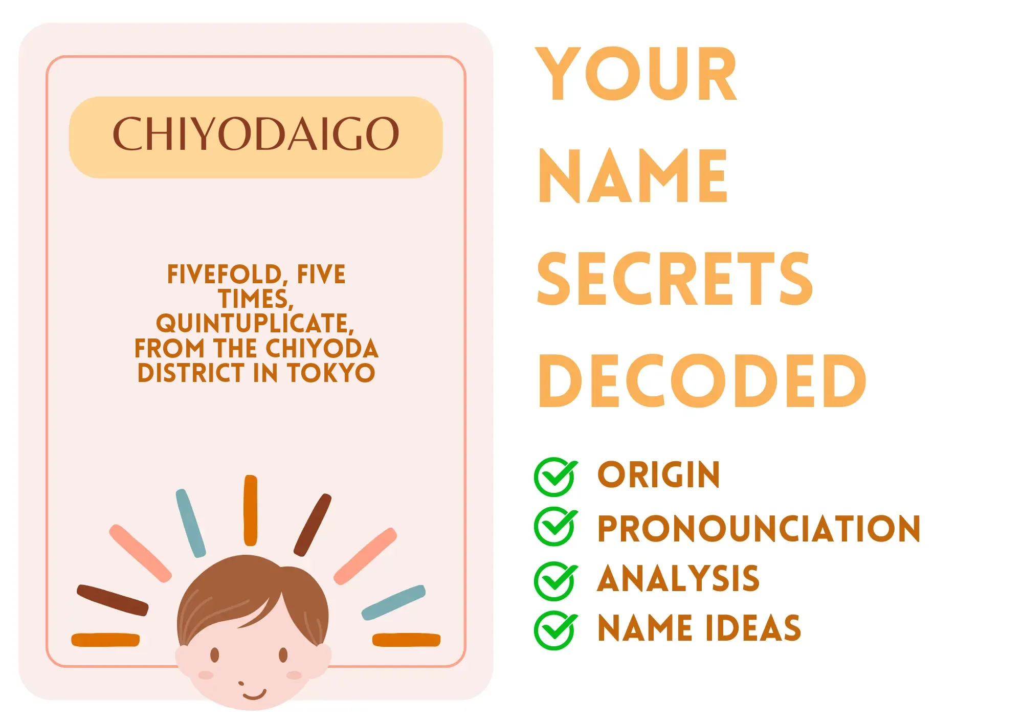 Imagine walking down the bustling streets of Tokyo's Chiyoda district, where history dances with beauty and each corner tells a story. That vibrancy is captured in the unique name, Chiyodaigo. This name isn't just a label; it’s an adventure waiting to unfold, a song you haven't yet heard. If you have this name, you're already off to an extraordinary start, embodying a fivefold spirit that makes you stand out in a crowd!