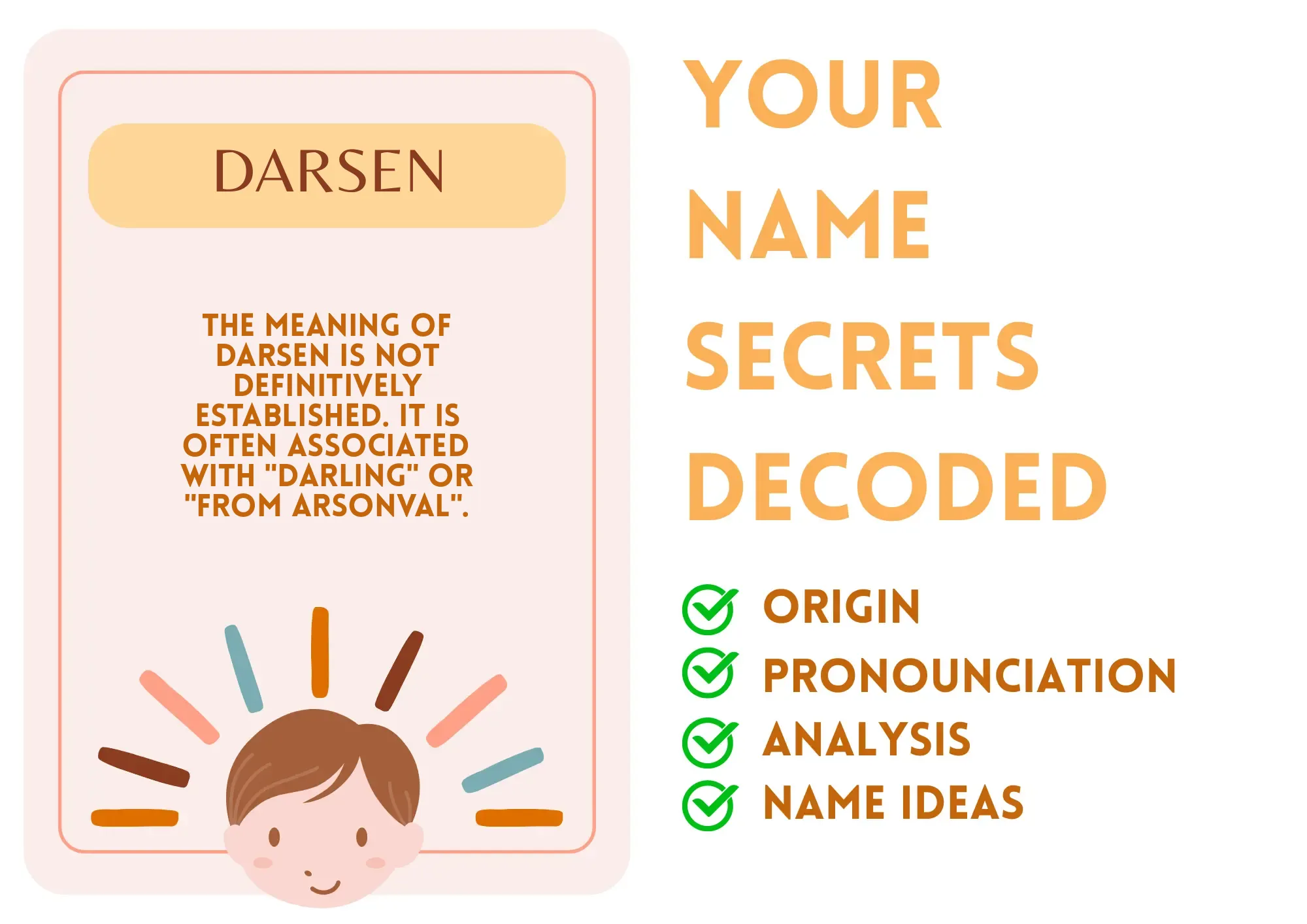 Meaning: The meaning of Darsen is not definitively established. It is often associated with "darling" or "from Arsonval".