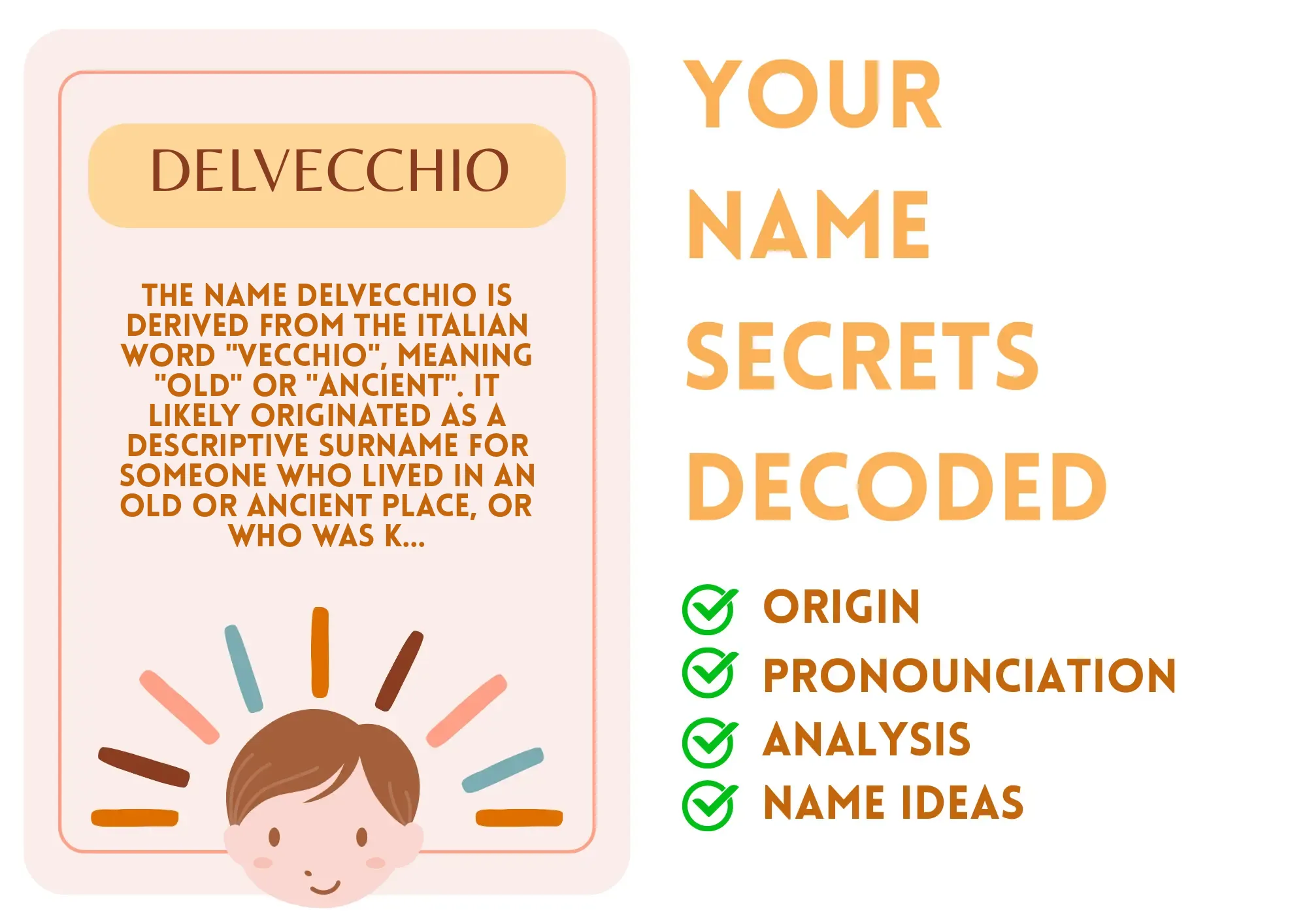 Meet Delvecchio, a name that flows off the tongue with elegance and strength, like a warm Italian breeze carrying tales of family dinners and timeless wisdom. For those bearing this distinguished name, life is an adventure marked by their unique charm and generous spirit. Just like a captivating film, you’re in for a ride, filled with drama, laughter, and a sprinkle of depth, thanks to the stories linked to this standout name.