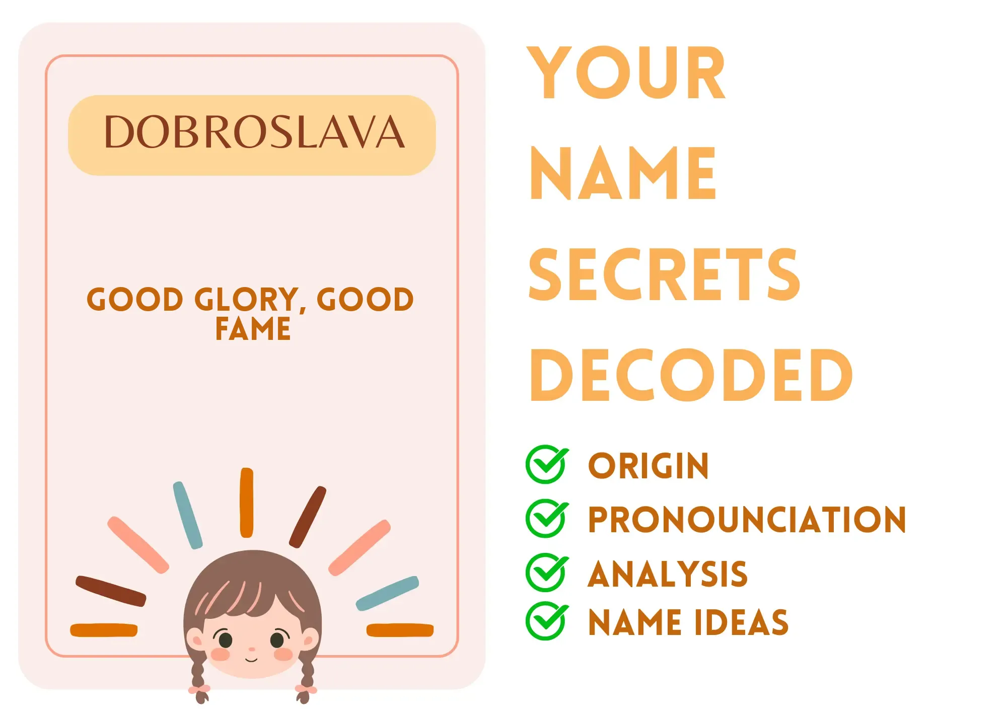 Dobroslava is a beautiful and strong name of Slavic origin, meaning "good glory" or "good fame." Primarily used in Czech and Slovak cultures, it is a feminine name with a rich history and deep cultural significance. The name reflects the values of honor, virtue, and good reputation, making it a meaningful choice for parents seeking a name with a strong character.