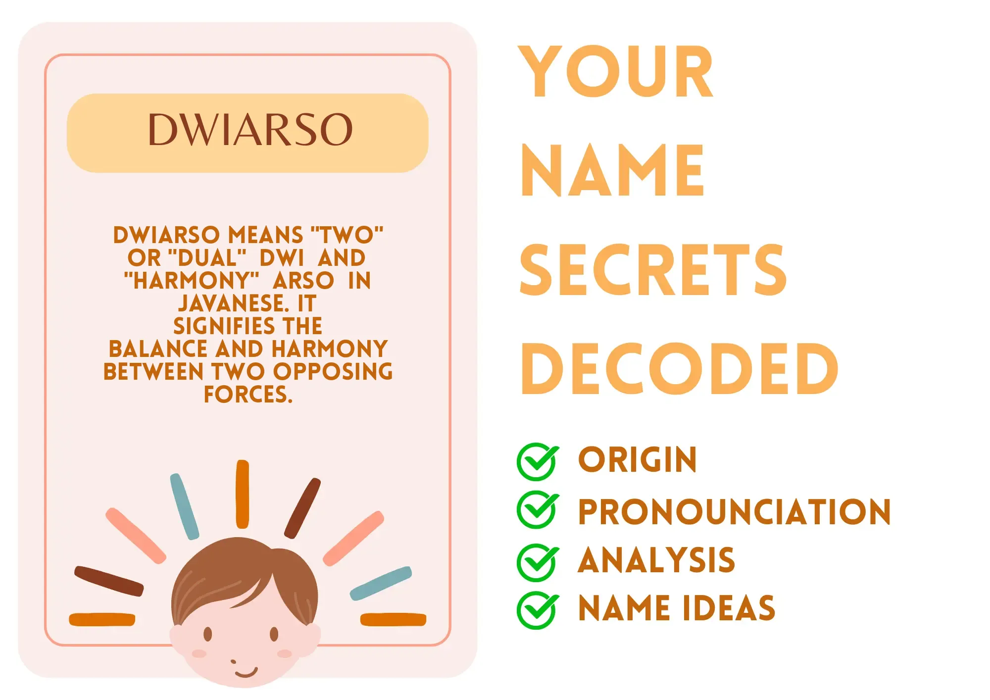 Dwiarso is easy to pronounce and write, and its unique sound makes it stand out. It is a name that is both traditional and modern, making it suitable for both traditional and contemporary families.