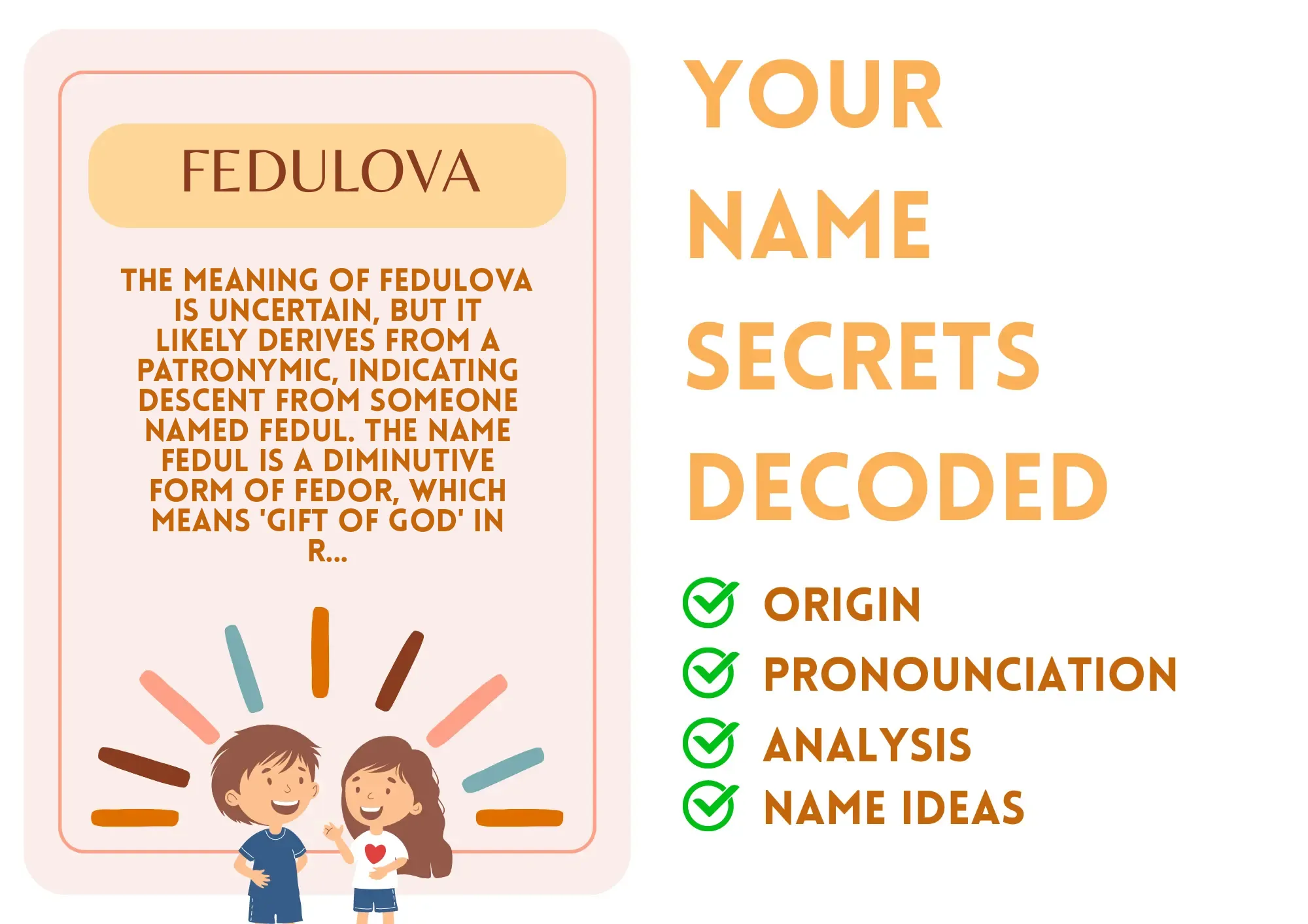 Ease of Writing and Calling: Fedulova is relatively easy to write and pronounce, although the 'v' sound at the end might require some attention. It is a memorable and distinctive name.