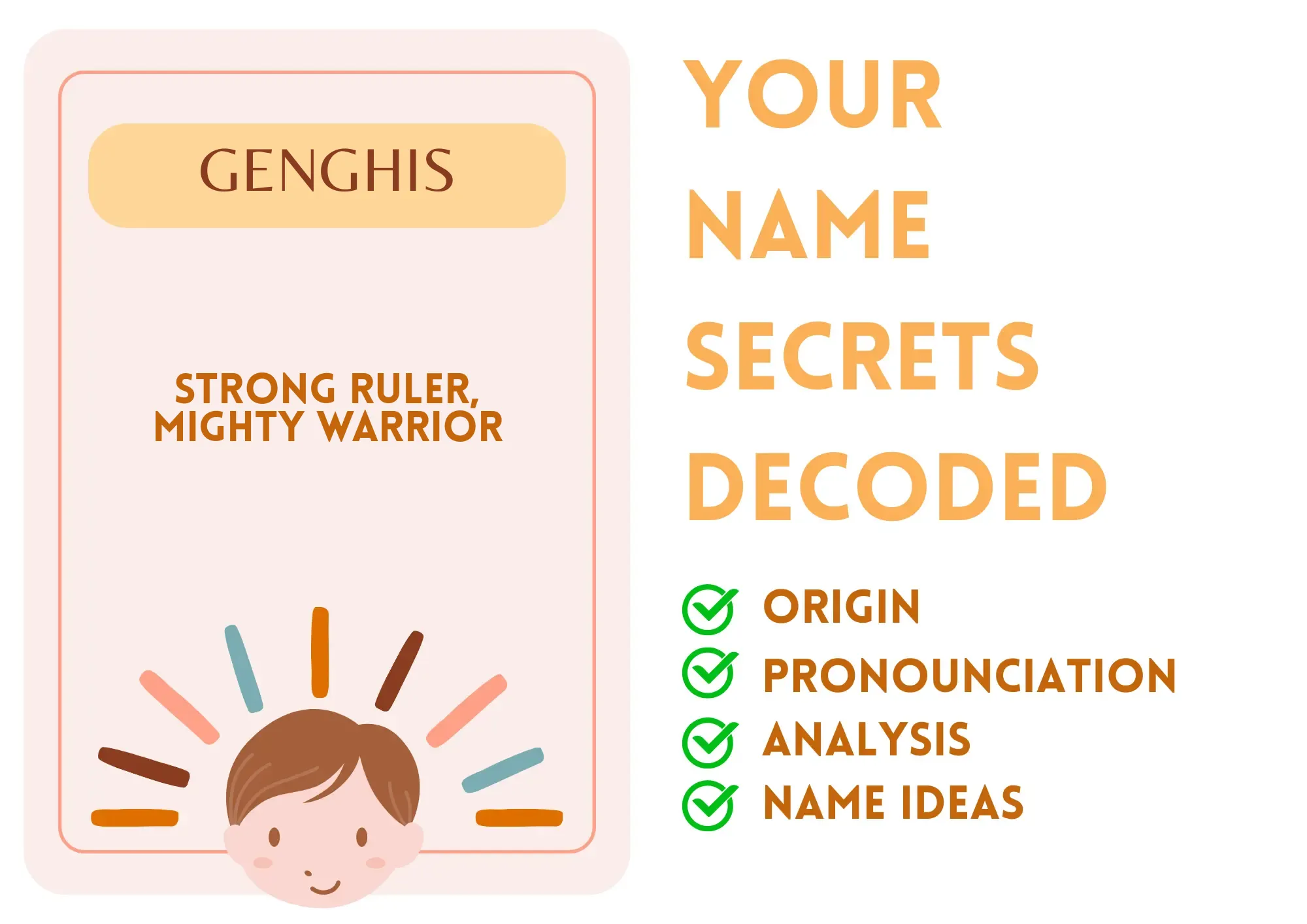 Genghis is destined for a creative career taking the road less traveled. People with names as distinctive as his often seek unconventional paths—think of them as the rebels in a world of conformity. Whether it’s becoming a filmmaker telling unique stories or an innovator developing groundbreaking apps, Genghis will carve his way in the professional landscape. His name leads to a quest for enlightenment, encouraging him to challenge norms and embrace distinctiveness—like an artist painting outside the lines!