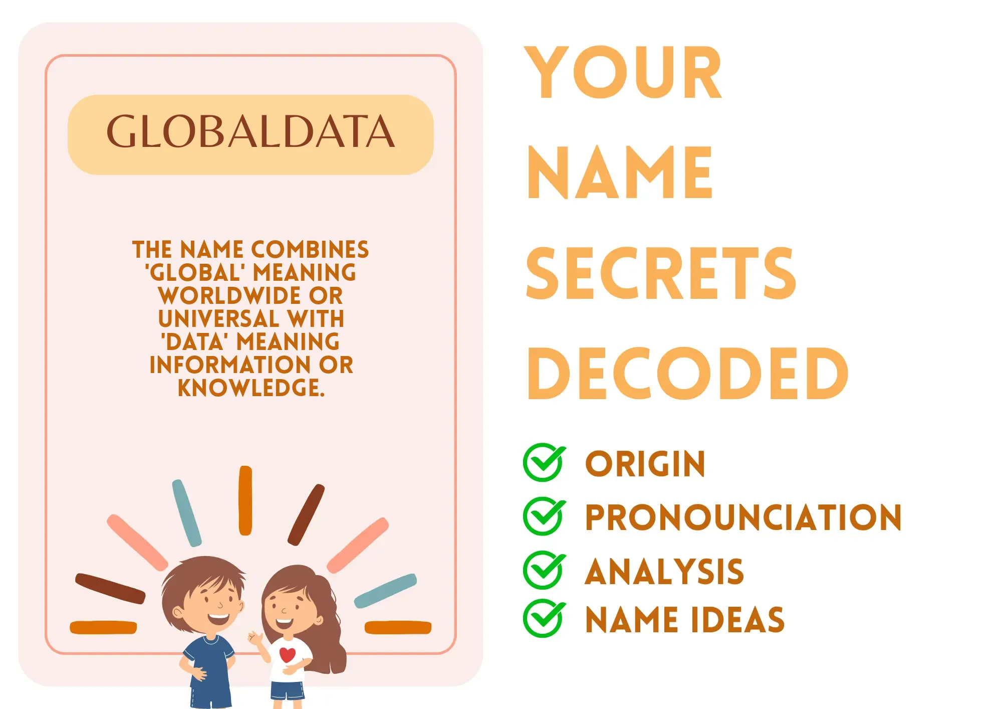 Globaldata is a unique and modern name that combines the word 'global,' referring to the world or universal aspects, and 'data,' indicating information or knowledge. This name carries contemporary significance, especially in the fields of technology and data analytics. As a name, it is unisex and can be used for individuals who are seen as forward-thinking and connected to the digital age.