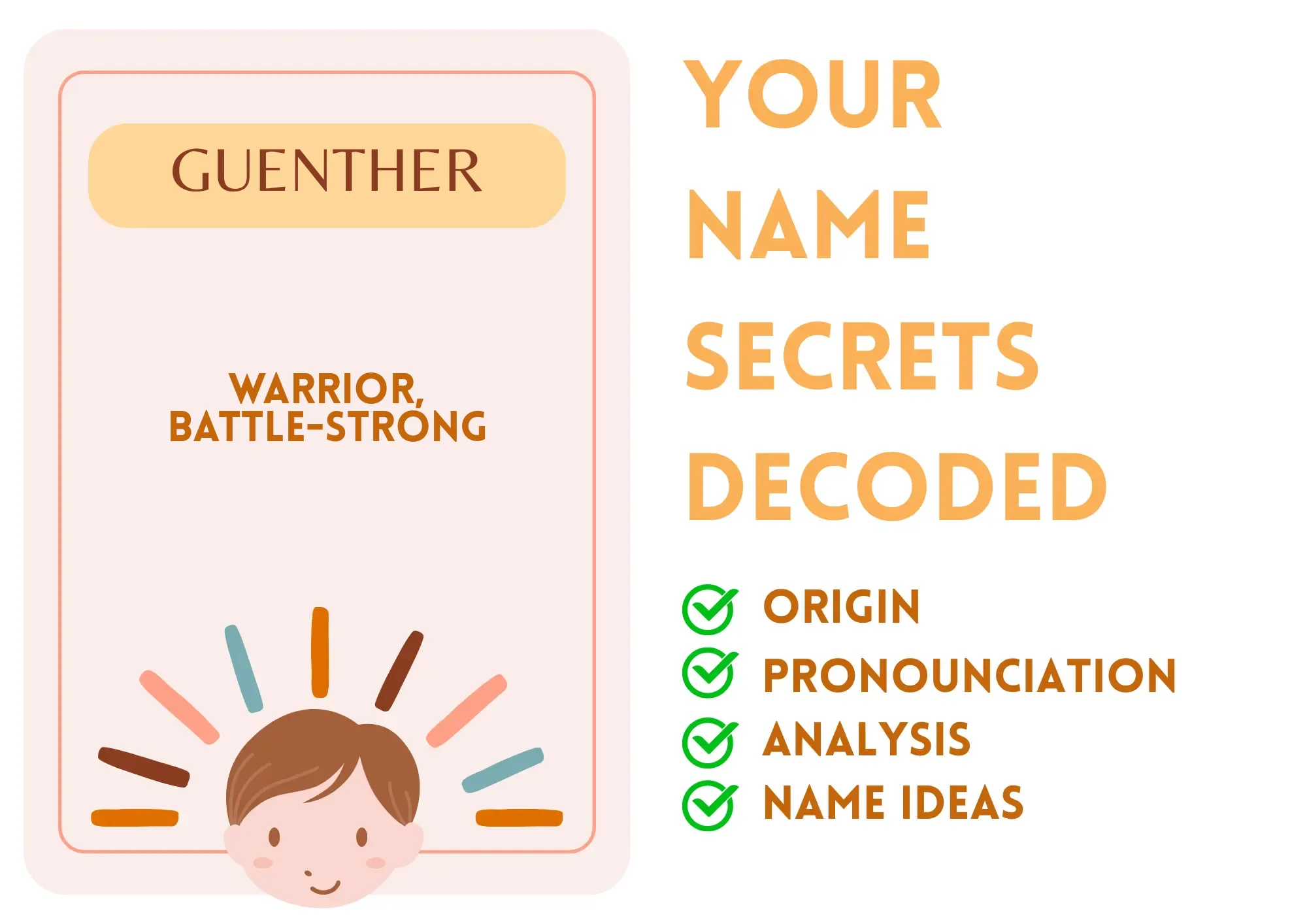 Origin: Guenther is a name of Germanic origin, derived from the Old High German word "Gundahar", meaning "battle-strong" or "warrior".