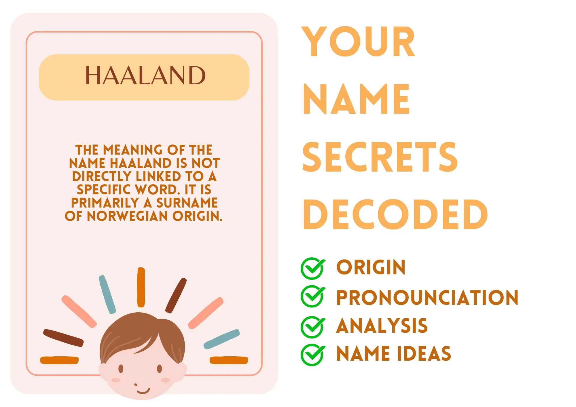 Haaland is a surname of Norwegian origin, gaining popularity as a given name in recent years, particularly for boys. It carries a strong and masculine vibe, evoking images of strength, determination, and resilience.