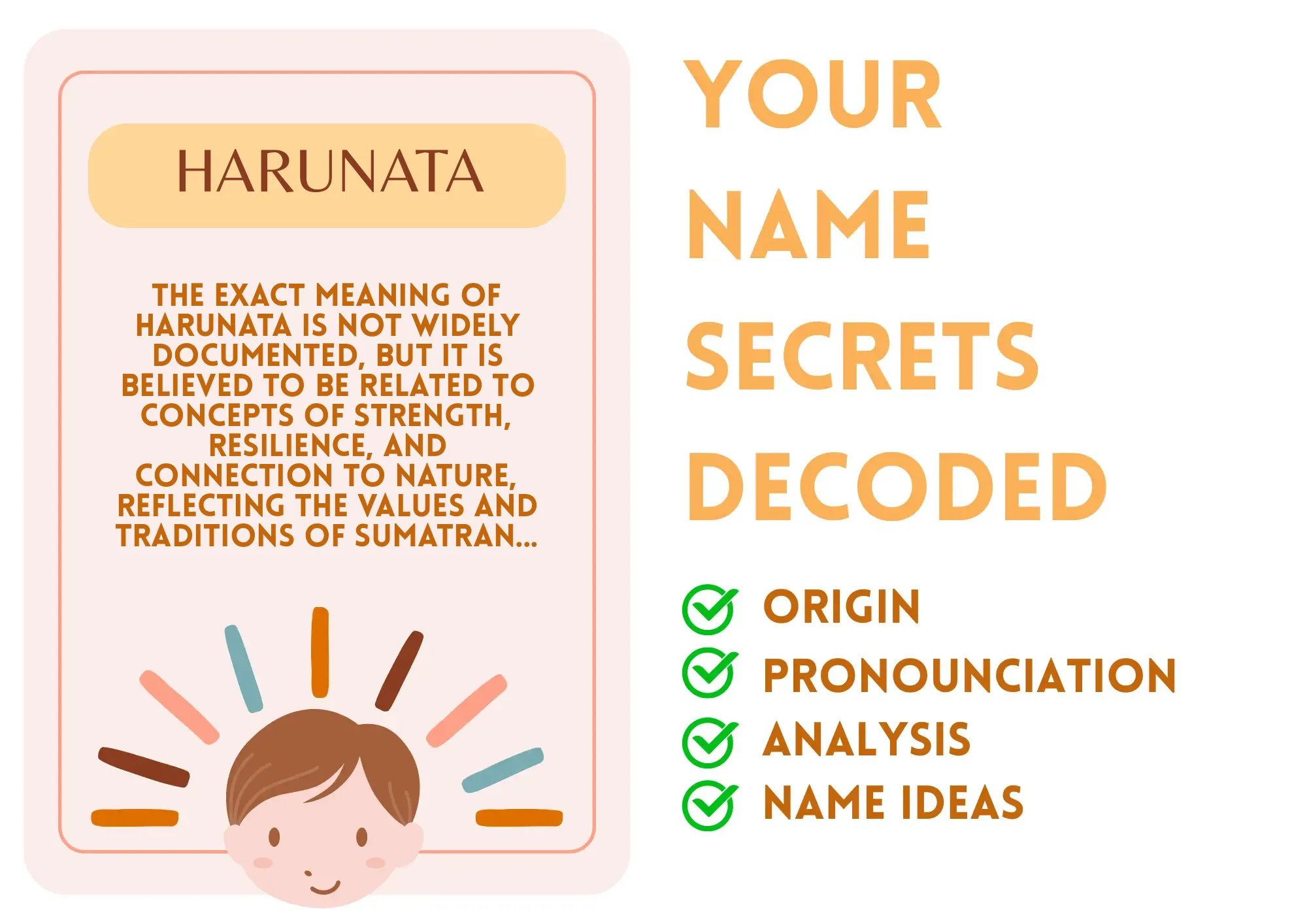 Origin: The name Harunata has origins in the local languages and traditions of Sumatra, Indonesia. It is likely to be derived from indigenous words or phrases reflecting the region's culture and history.