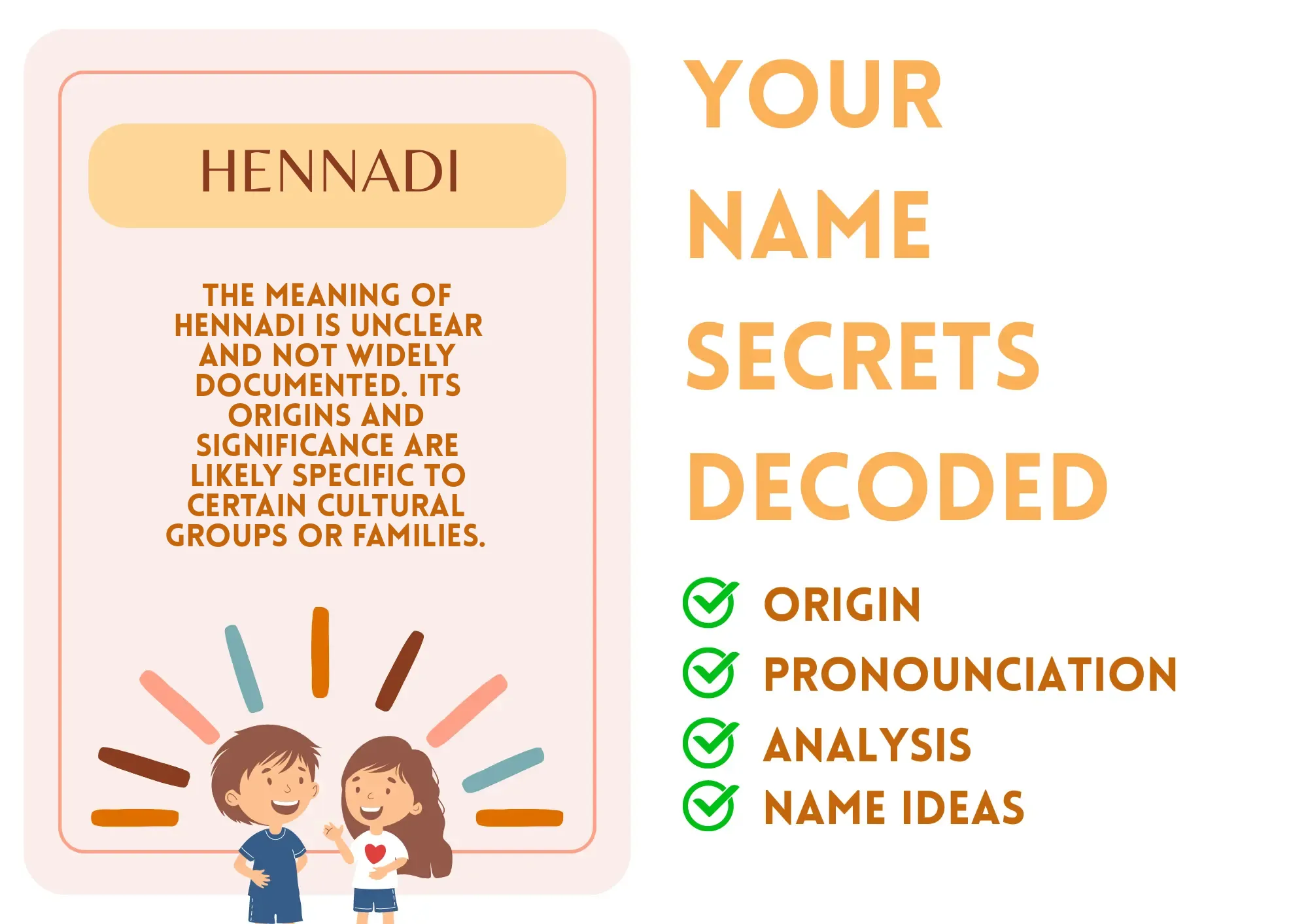 Meaning: The meaning of Hennadi is unclear and not widely documented. Its origins and significance are likely specific to certain cultural groups or families.