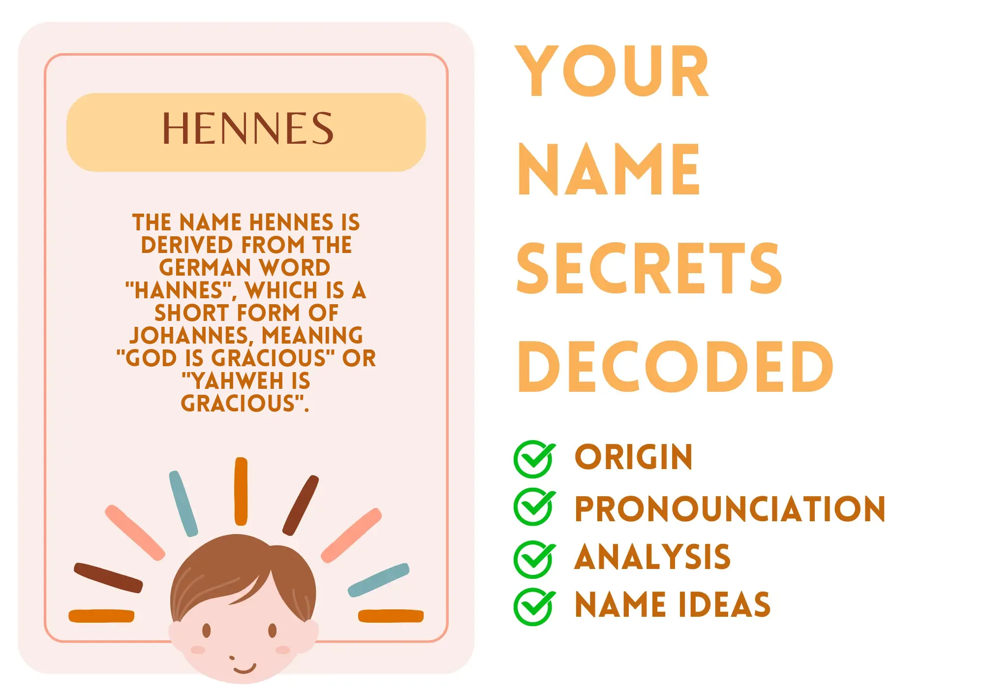 Meaning: The name Hennes is derived from the German word "Hannes", which is a short form of Johannes, meaning "God is gracious" or "Yahweh is gracious".