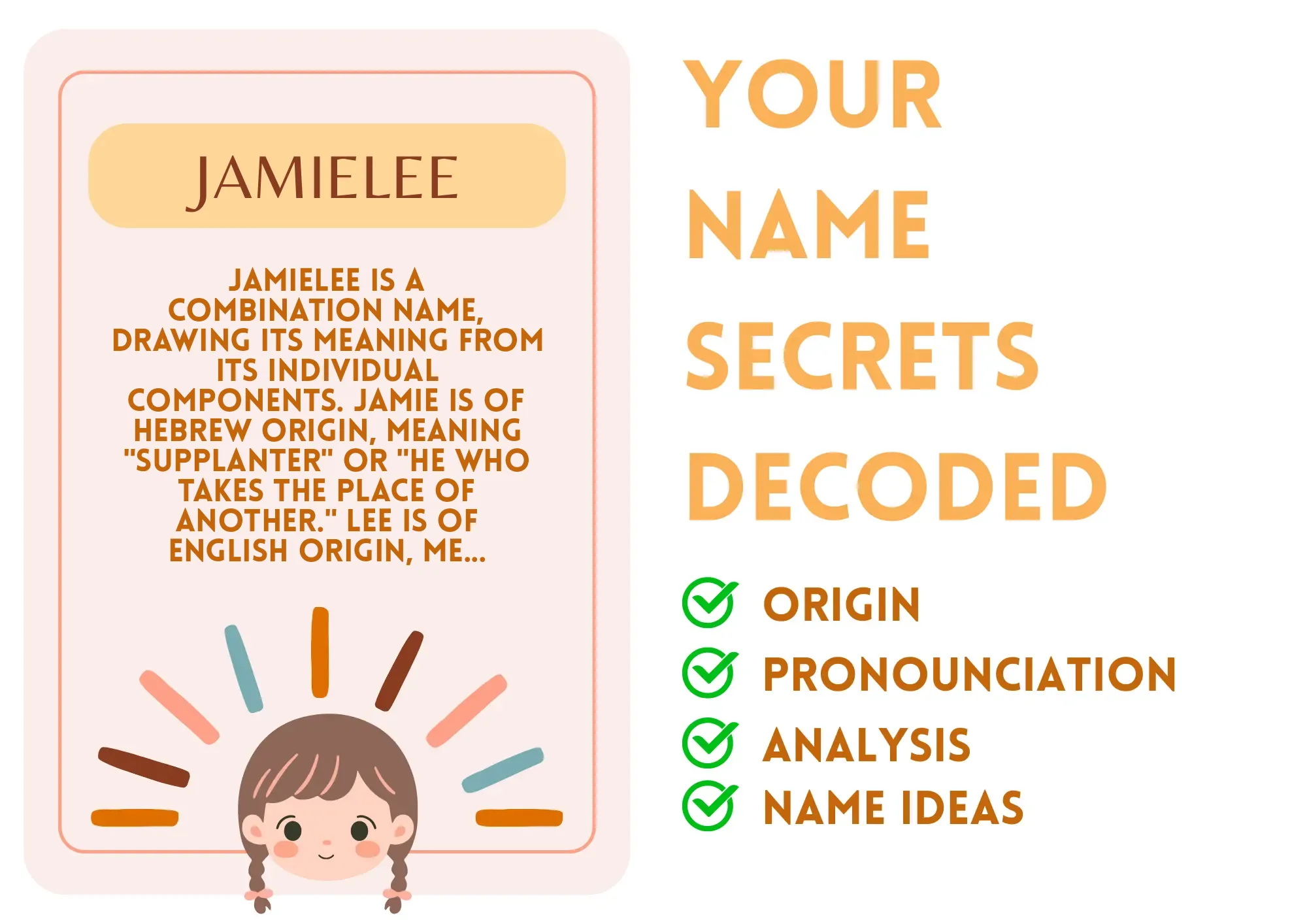 Jamielee is a unique and modern name that combines the classic charm of Jamie with the feminine touch of Lee. It is primarily used for girls and carries a sense of strength, individuality, and a touch of whimsy. The name is easy to pronounce and spell, making it a practical choice for parents seeking a name that is both memorable and distinctive.