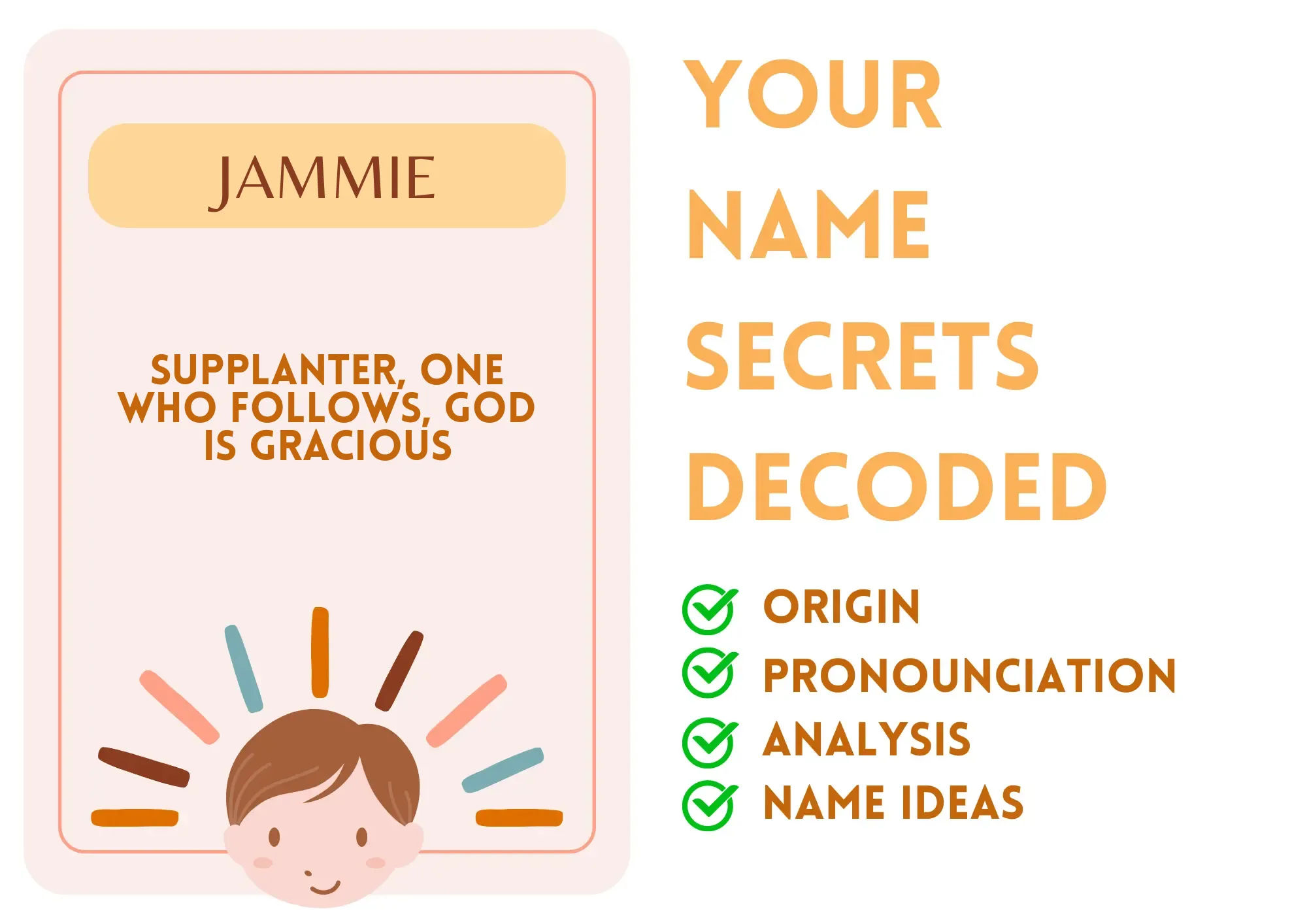 Jammie is a charming and friendly name, often associated with warmth, comfort, and a playful spirit. While traditionally a nickname for 'James' or 'Jamie', it has emerged as a standalone name, particularly for boys. Its origins are rooted in Hebrew and English, with connections to the name 'Jacob' and the word 'jam'.