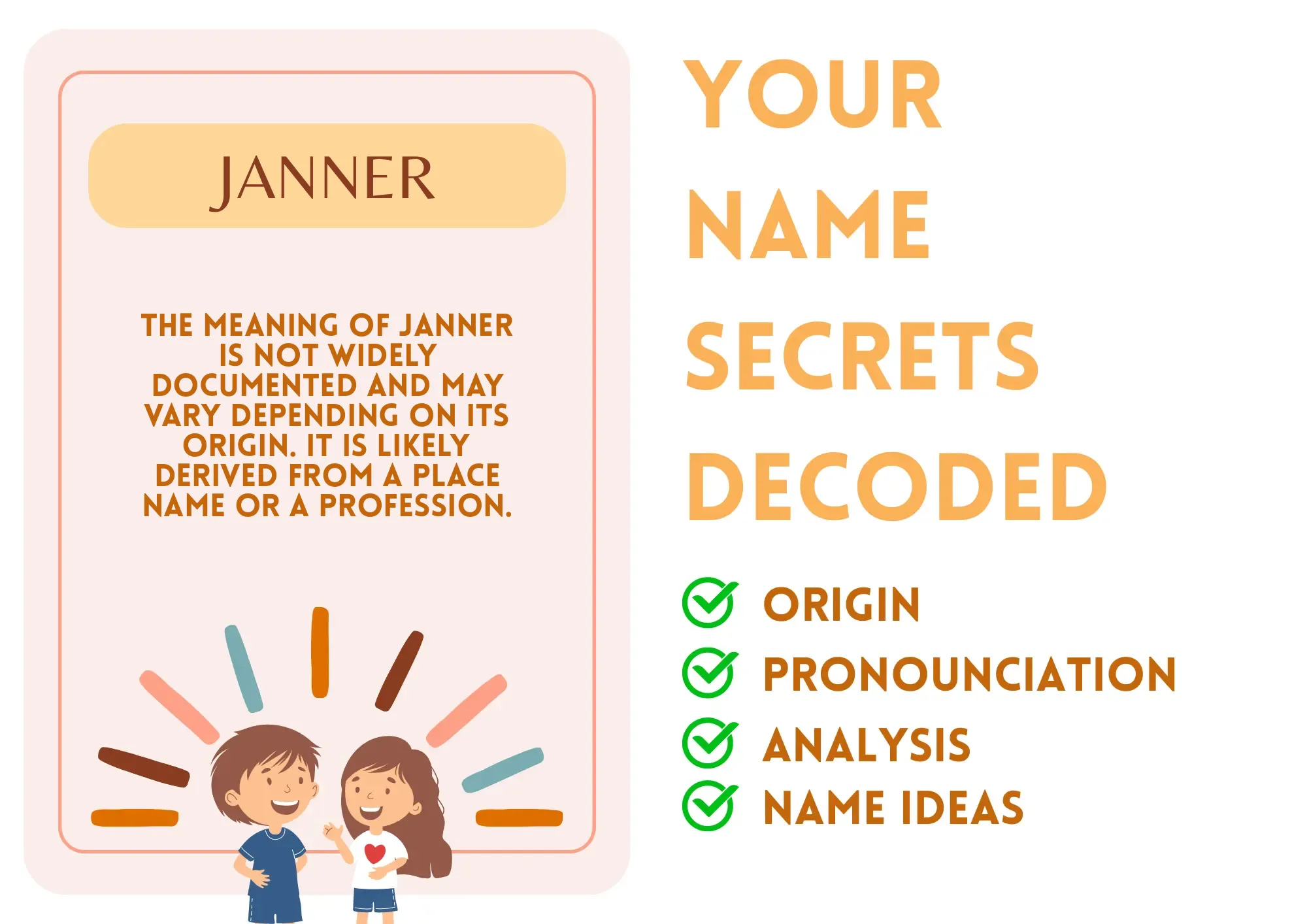 The name is easy to write and pronounce, with a straightforward spelling and two syllables. Its rarity may make it a conversation starter and evoke curiosity. While not deeply rooted in history or popular culture, Janner's simplicity and uniqueness offer a fresh and modern feel.