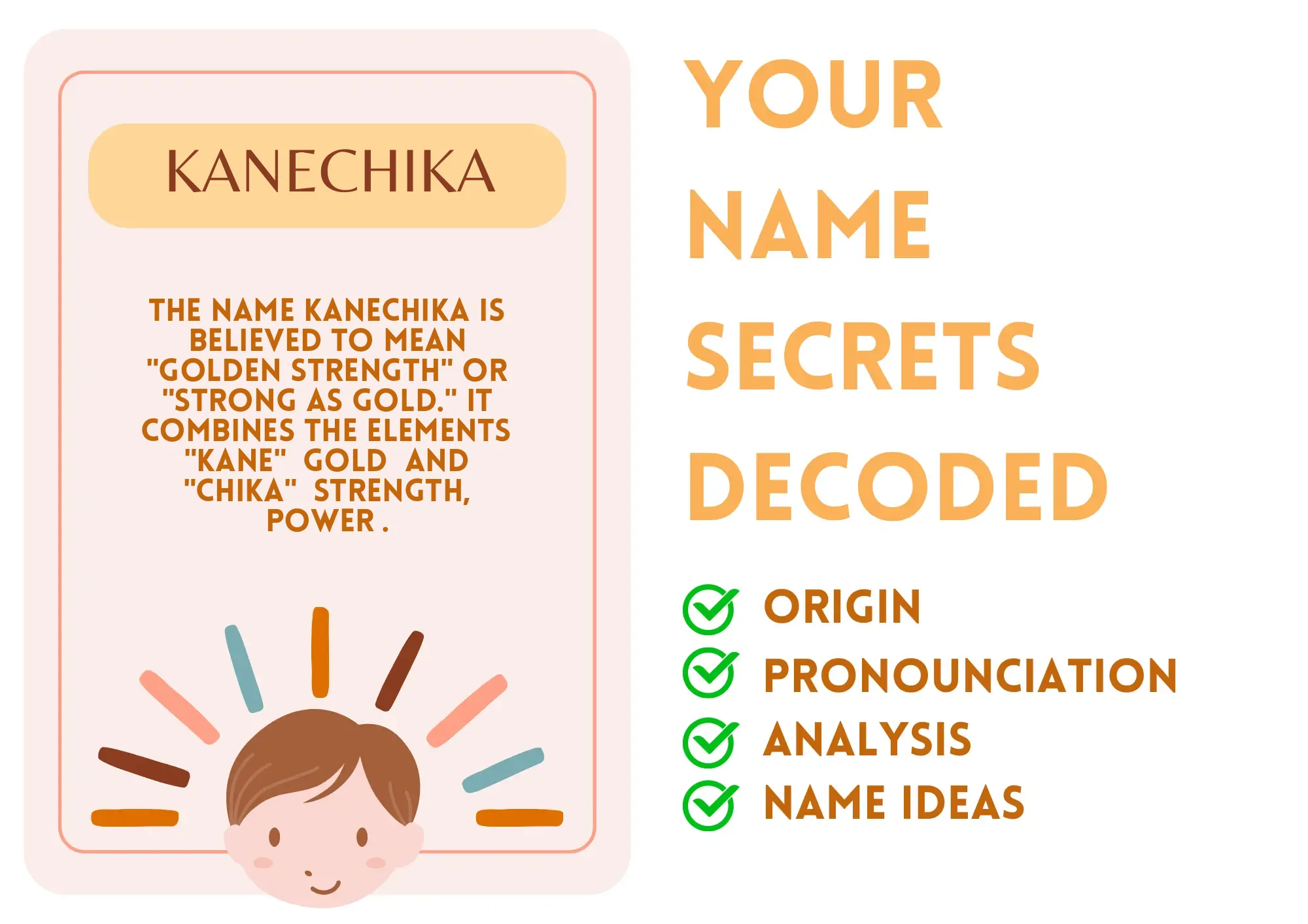 So, what if I told you that names carry a sort of secret power? They can shape how you show up in the world and even influence your path in life. Meet Kanechika, a name that sounds like a battle cry for courage and creativity. As a name rooted in Japanese culture, Kanechika isn't just unique—it's a beacon of strength, inviting you to explore the vibrant qualities that make you, well, you!