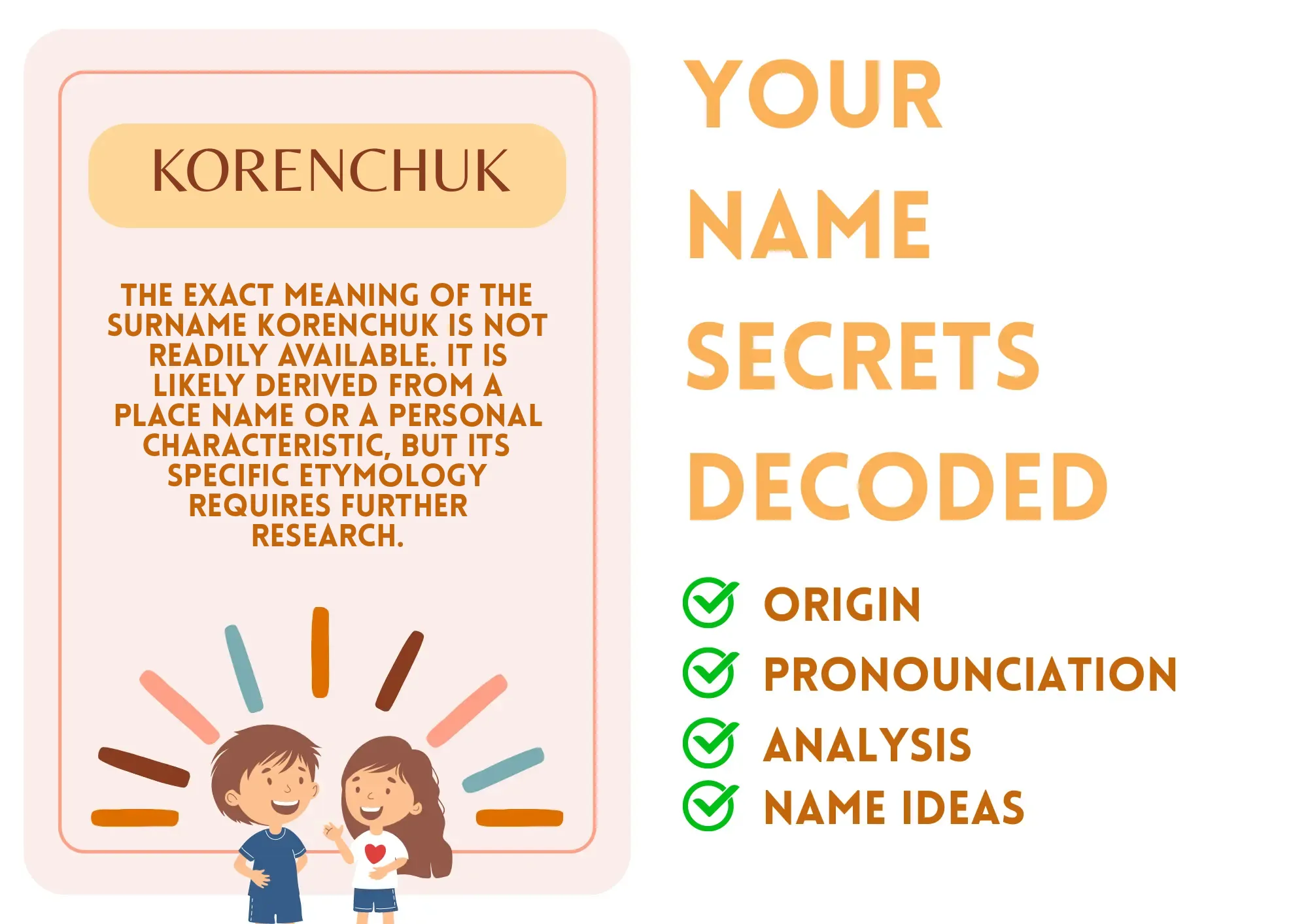 Ease of Writing and Calling: Korenchuk is relatively easy to write and pronounce. It consists of three syllables and is spelled phonetically.