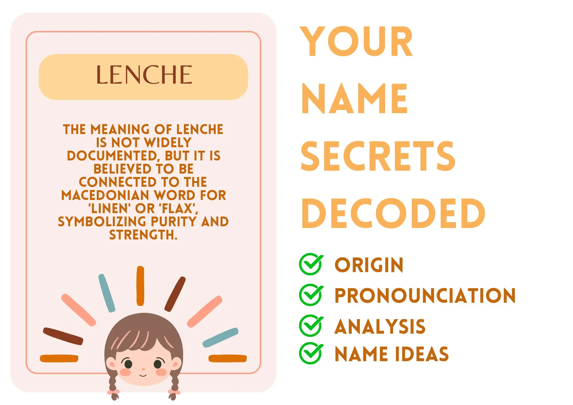 Lenche is easy to pronounce and spell, making it approachable and memorable. Its gentle sound and positive connotations contribute to its appeal. While not frequently encountered, Lenche offers a distinctive and meaningful choice for parents seeking a name with cultural depth.