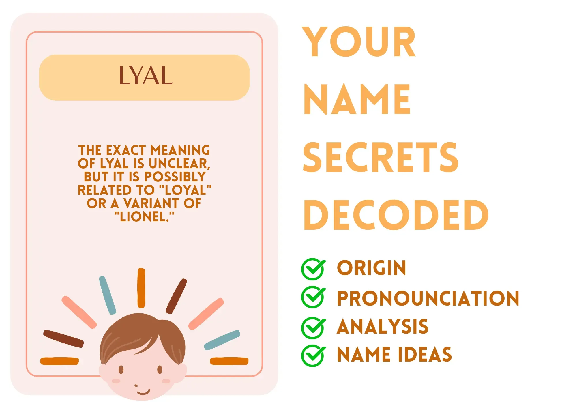 Meaning: The exact meaning of Lyal is unclear, but it is possibly related to "loyal" or a variant of "Lionel."