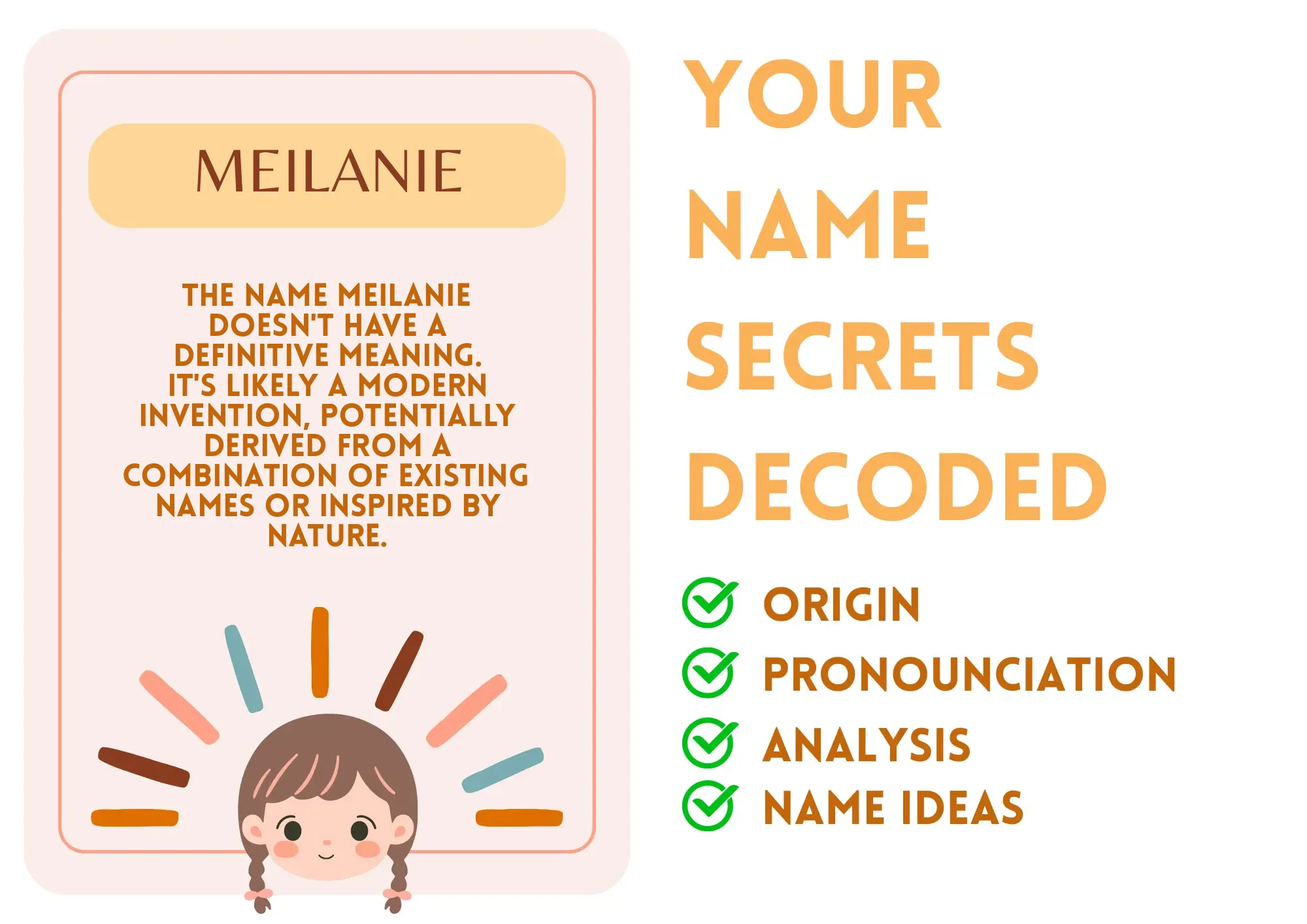 Meilanie is a unique and elegant name with a touch of mystery. It's a modern twist on traditional names, blending elements of classic and contemporary styles. The name is often associated with grace, beauty, and strength, making it a popular choice for parents seeking a name that is both sophisticated and distinctive.