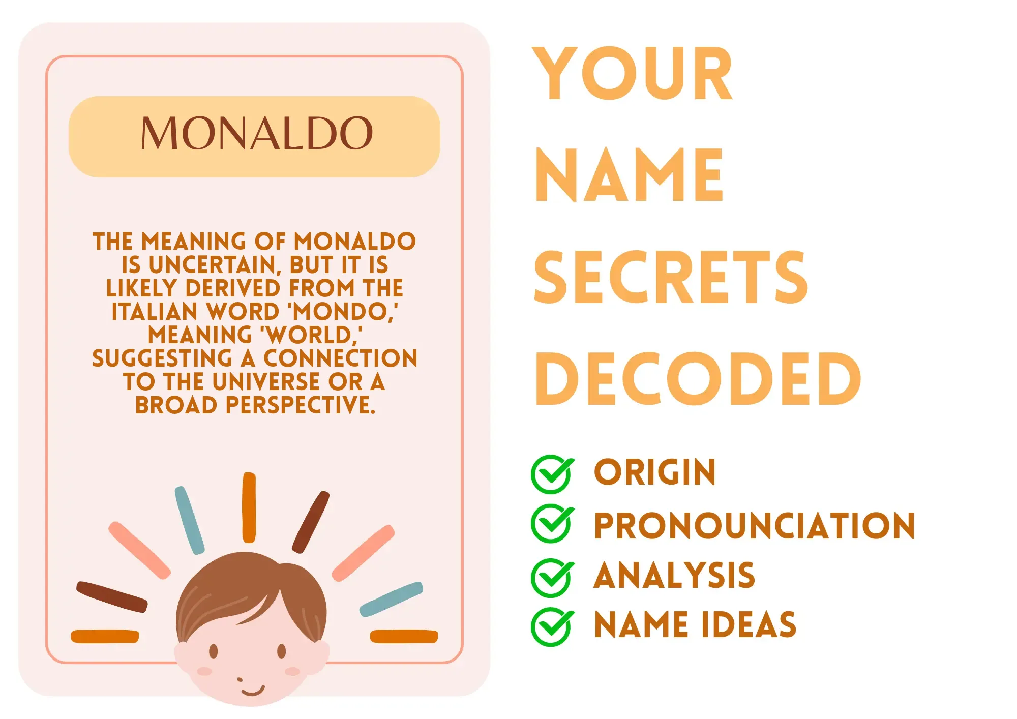 Monaldo has connections that extend beyond what the eyes can see. Drawing inspiration from a name that whispers of "the world," individuals like you tend to have a broad outlook on life. Think of it as having a pair of magic binoculars, allowing you to see possibilities that others might miss. This panoramic perspective means you're likely curious and eager to understand the experiences of those around you, forming connections that enrich your journey. You may find yourself interested in travel or cultural exploration—embracing the diversity the world has to offer!