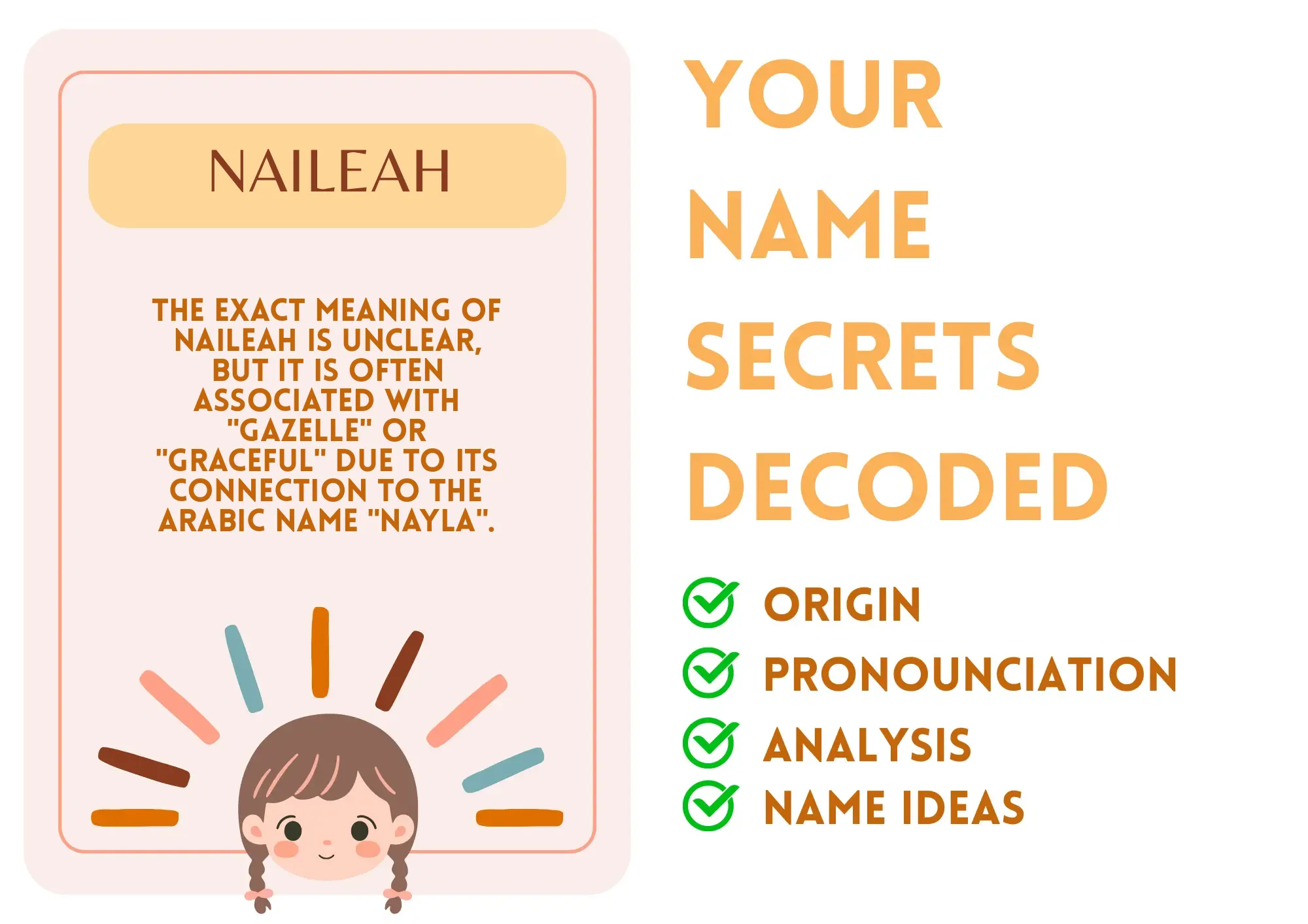 Hey there! Let’s talk about Naileah, a name that feels as fresh as a spring breeze. Imagine a gazelle, quick and agile, gliding gracefully across the savannah. That’s what this name embodies, mixing elegance with energy. Naileah isn’t just an ordinary name; it’s like a breath of fresh air in a world filled with the usual. With her distinctive name, she brings a unique vibe wherever she goes. Just saying it feels delightful and inviting!