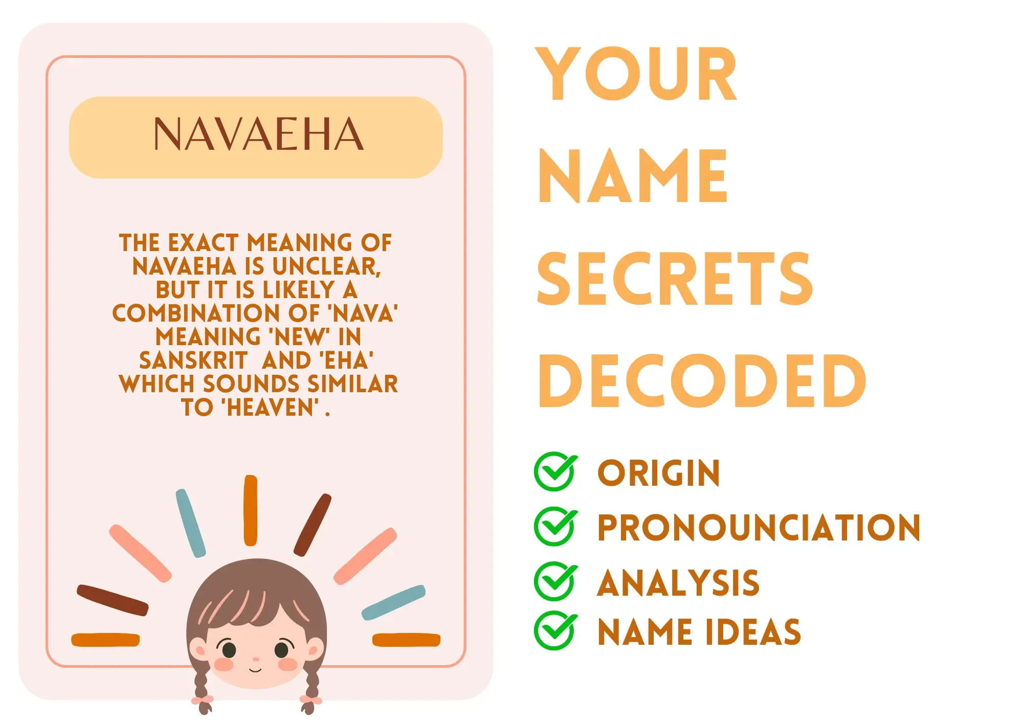 Meaning: The exact meaning of Navaeha is unclear, but it is likely a combination of 'nava' (meaning 'new' in Sanskrit) and 'eha' (which sounds similar to 'heaven').