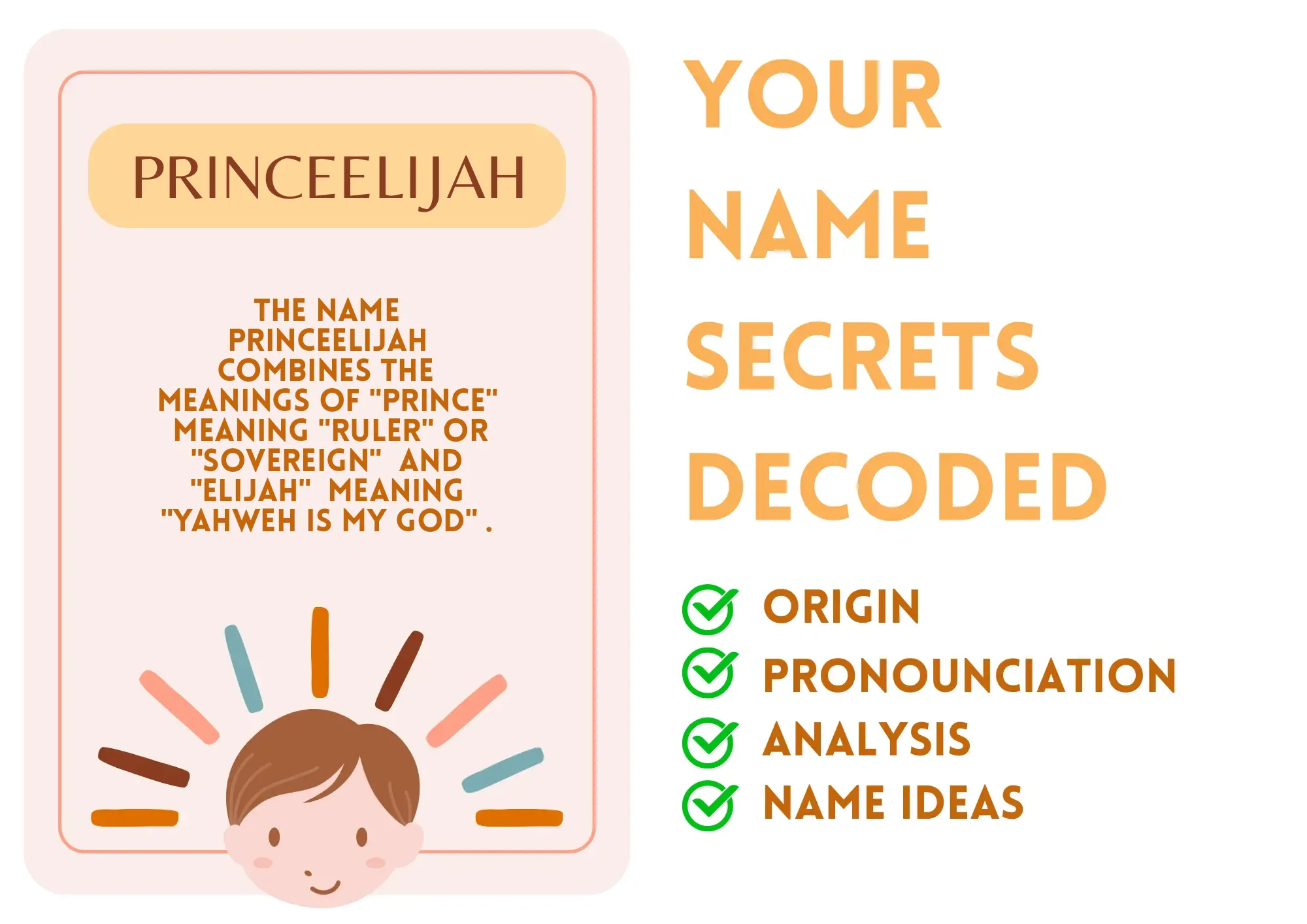 Meaning: The name Princeelijah combines the meanings of "Prince" (meaning "ruler" or "sovereign") and "Elijah" (meaning "Yahweh is my God").