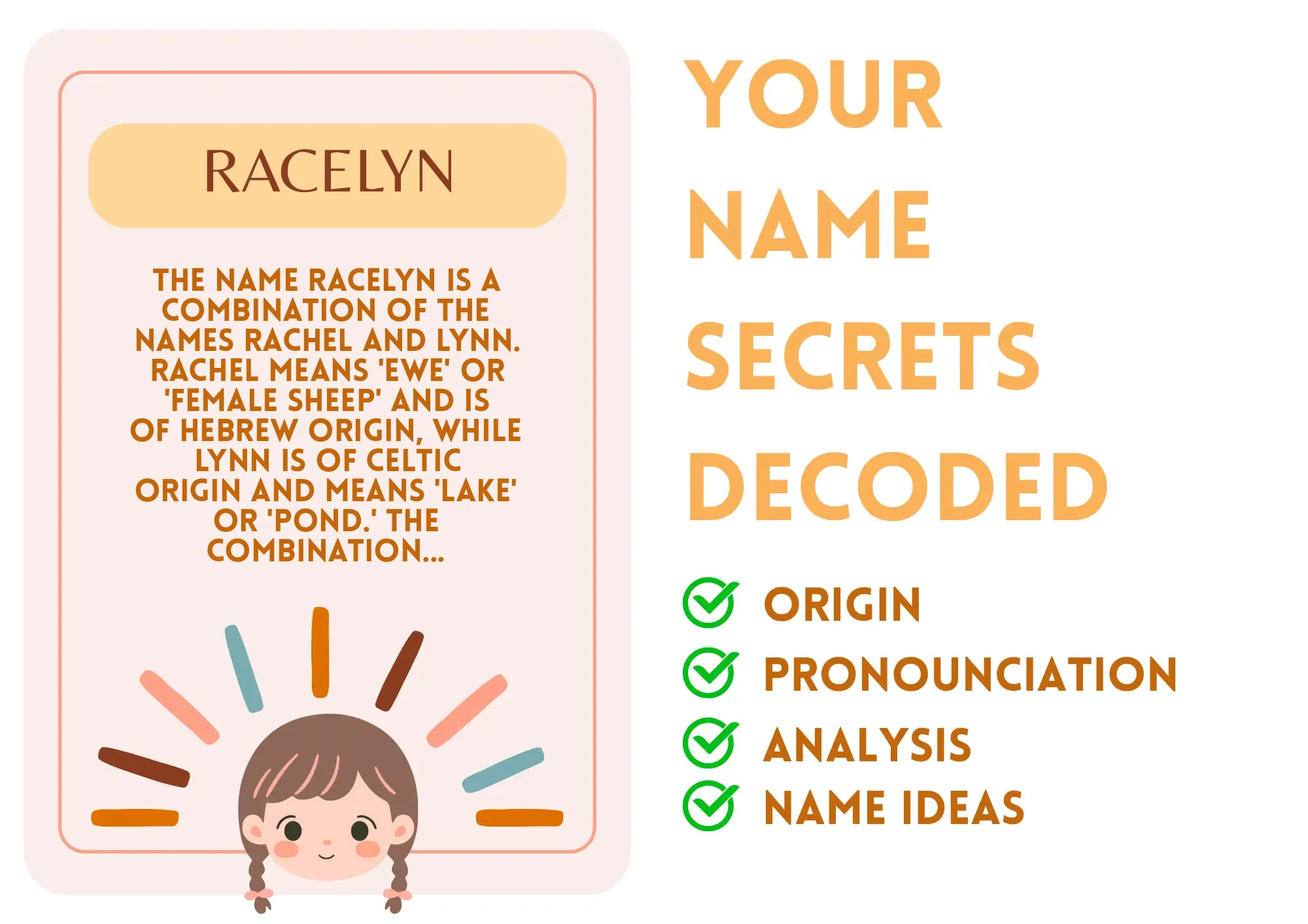 Ever encountered someone whose name feels alive? Meet Racelyn—a name that echoes the beauty of nature and the grace of femininity! Just like the gentle flow of a stream or the soft rustle of leaves in the wind, Racelyn brings a refreshing vibe everywhere she goes. Whether it's her enchanting laughter or her heartfelt conversations, she makes the world a better place just by being in it. Can you picture that? Now, let’s dig into what makes Racelyn truly unique!