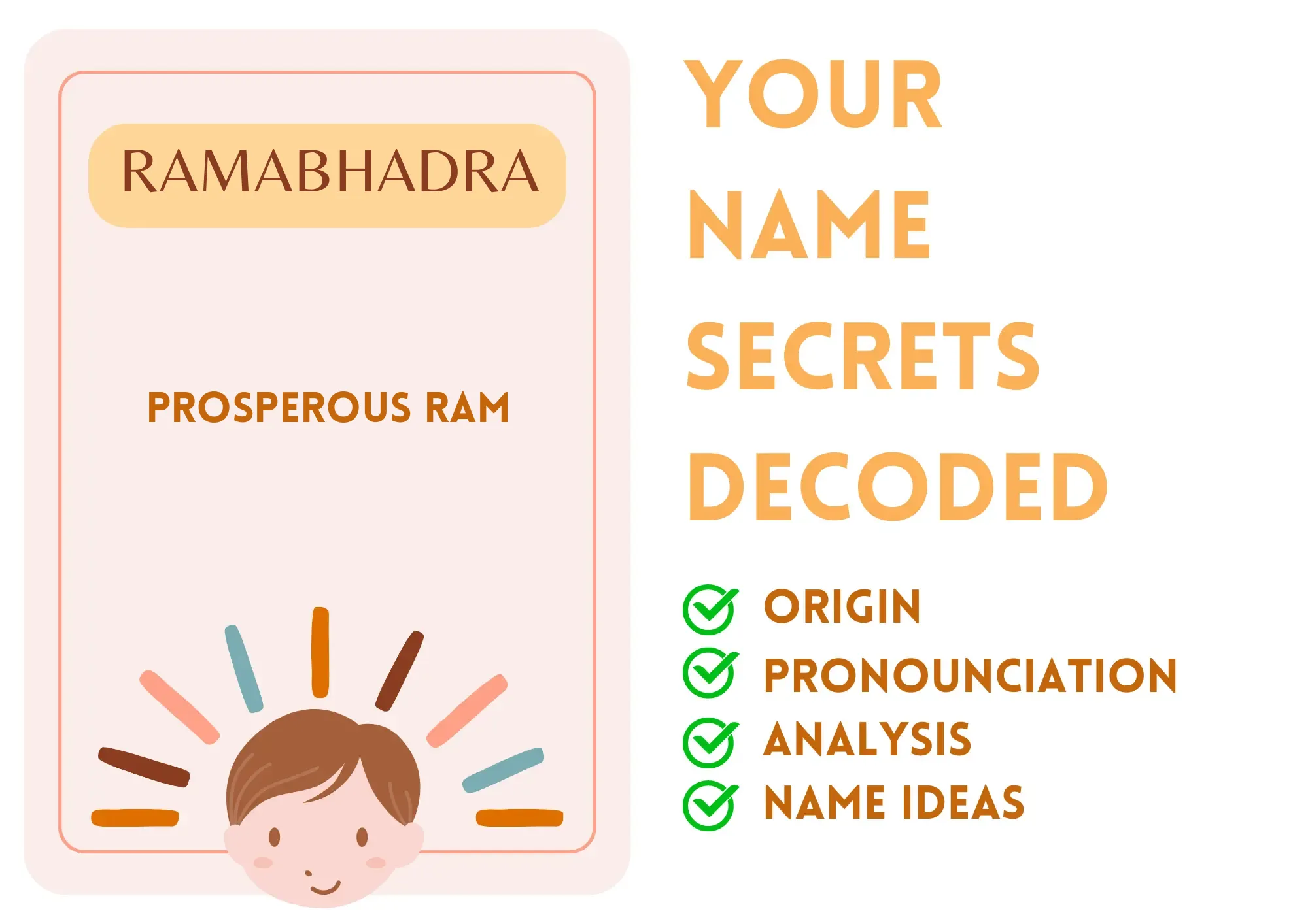 In religious contexts, Ramabhadra symbolizes moral integrity and virtue, appealing to parents who wish to instill strong values in their children. The name carries historical significance, often evoking images of bravery and nobility through its connection to epic tales such as the Ramayana.