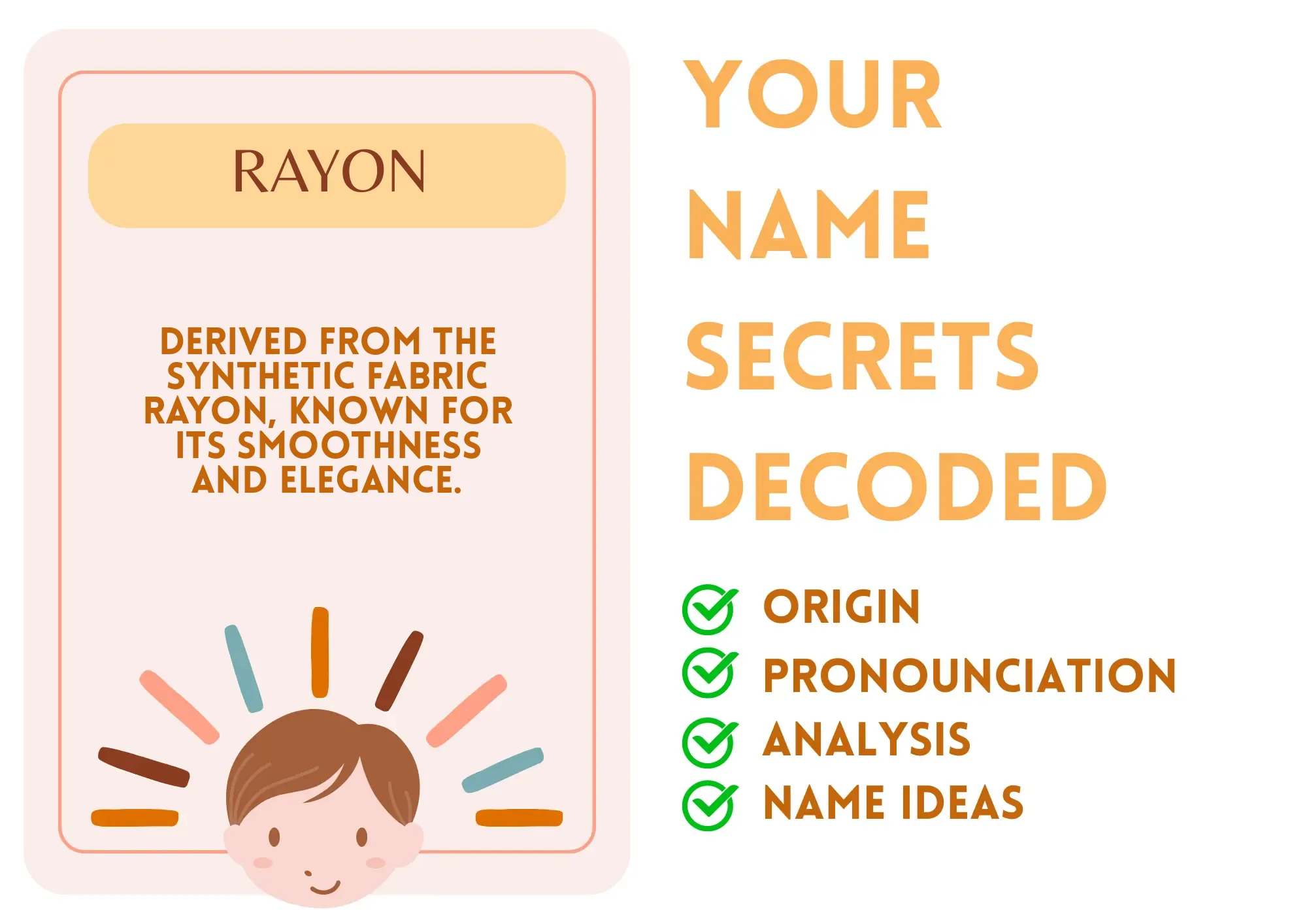 Meaning: Derived from the synthetic fabric rayon, known for its smoothness and elegance.