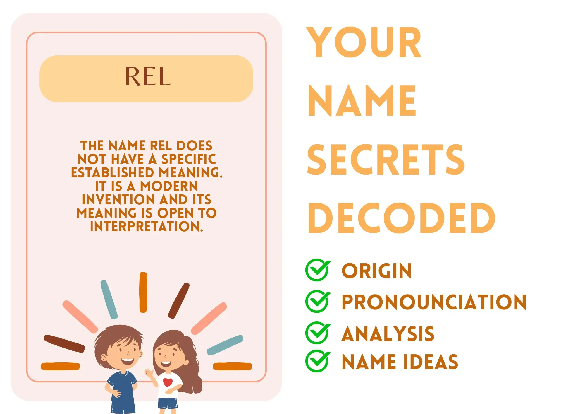 Rel is a short and modern name with a unique sound. While its meaning is not directly tied to any specific word, its simplicity and unconventional nature make it stand out. It is primarily used as a unisex name, though it is more commonly used for boys.