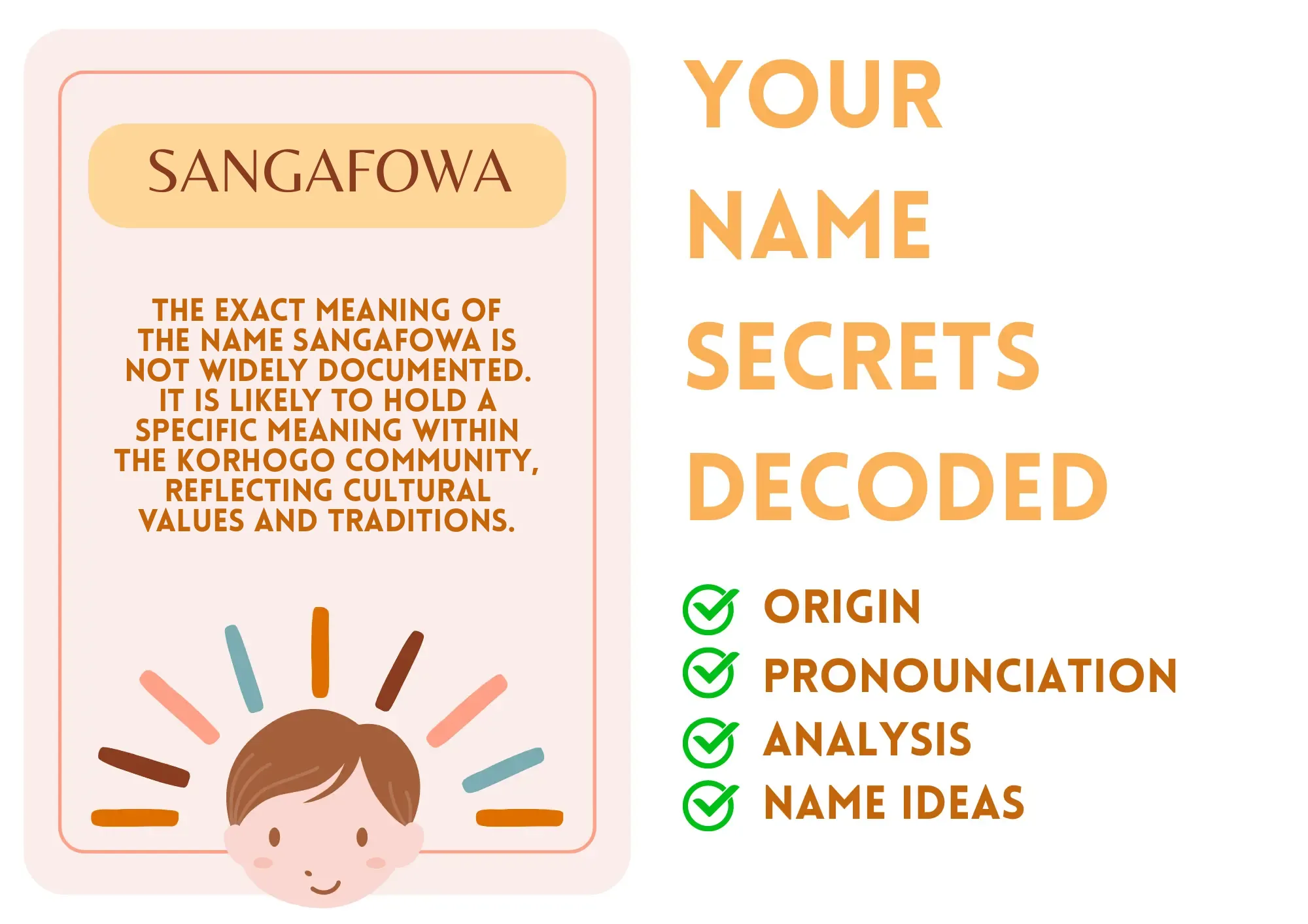 Sangafowa is a name that is easy to write and pronounce, making it memorable and accessible. While not widely known outside of the Korhogo community, it is a name that stands out for its unique sound and cultural connection.