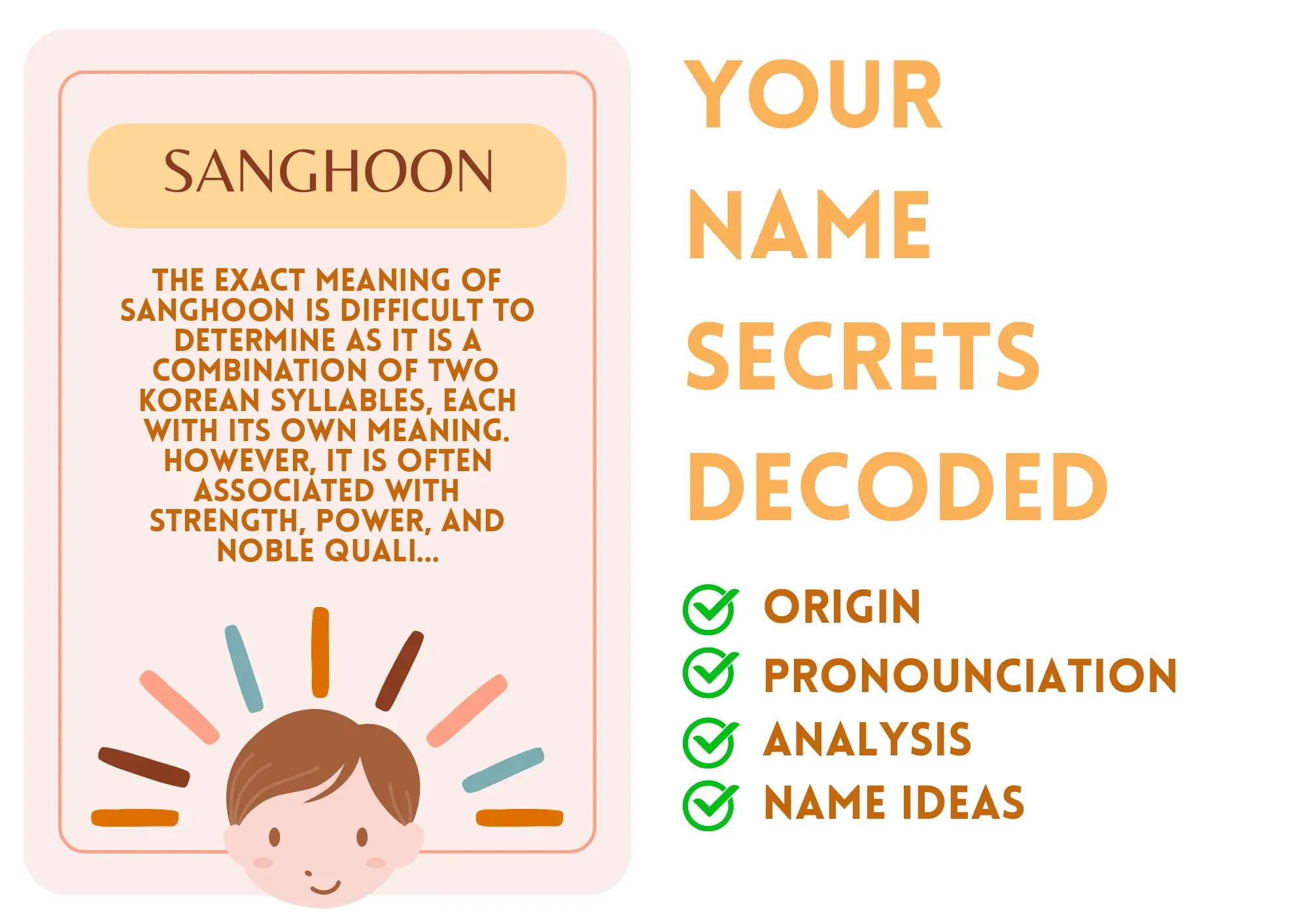 Imagine having a name that echoes the resilience of your heritage, a name that resonates with a certain charm and a unique story attached to it. Sanghoon isn’t just a name; it’s a badge of honor, crafting an identity intertwined with cultural significance and strength. Like an uncommon gem, it shines brightly among the usual crowd of names, promising a unique journey ahead!