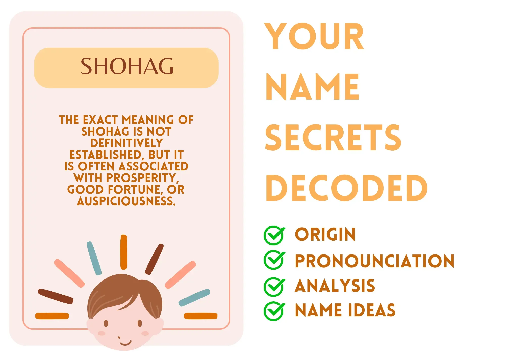 Imagine a name that carries with it the scent of blooming flowers and the sound of laughter. A name like Shohag evokes a sense of good fortune, like stumbling upon a hidden treasure on a lazy afternoon. In a world where names can shape destinies, Shohag stands out as a promise of happiness, reminding you that life can be a delightful adventure.