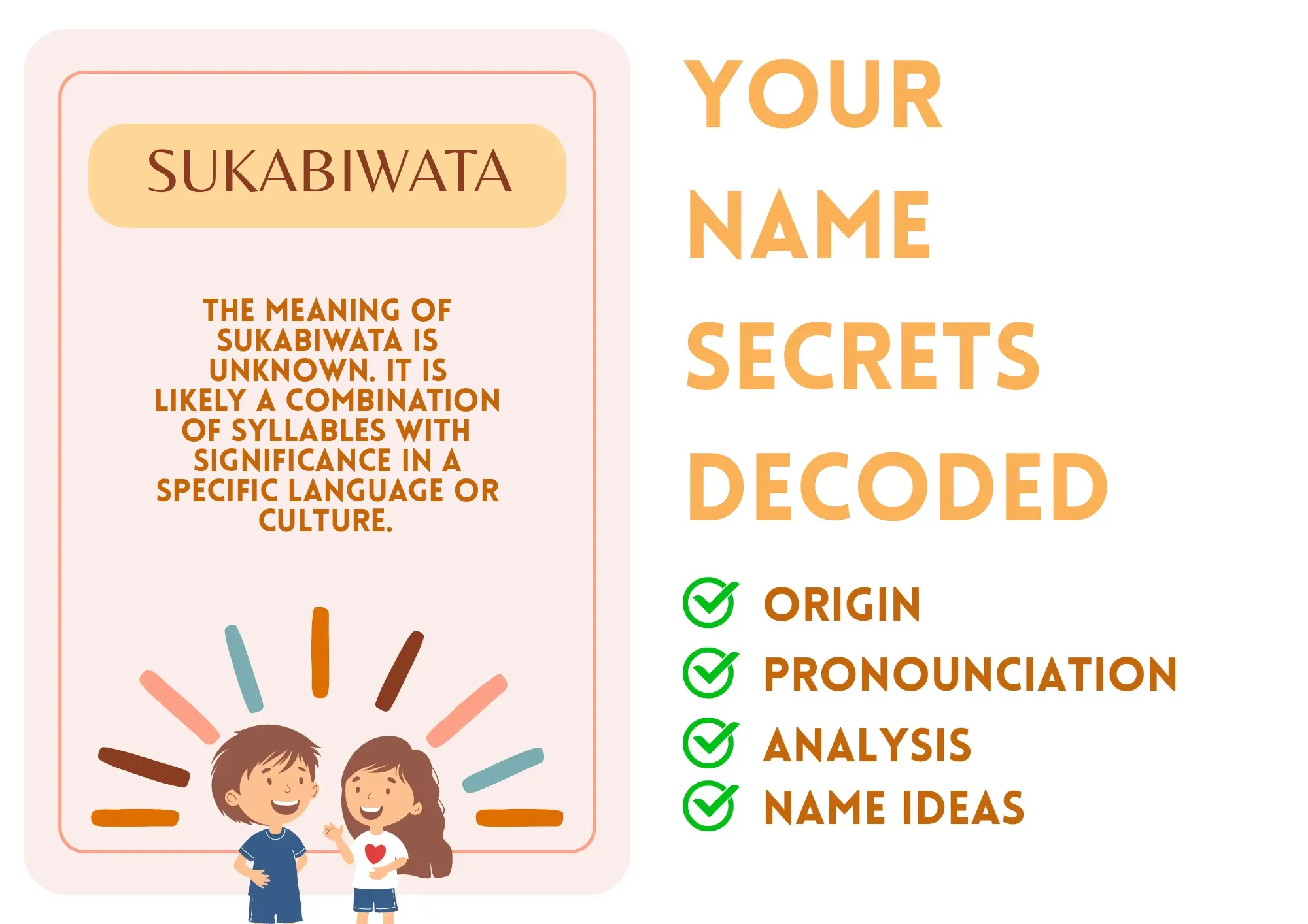 Meaning: The meaning of Sukabiwata is unknown. It is likely a combination of syllables with significance in a specific language or culture.