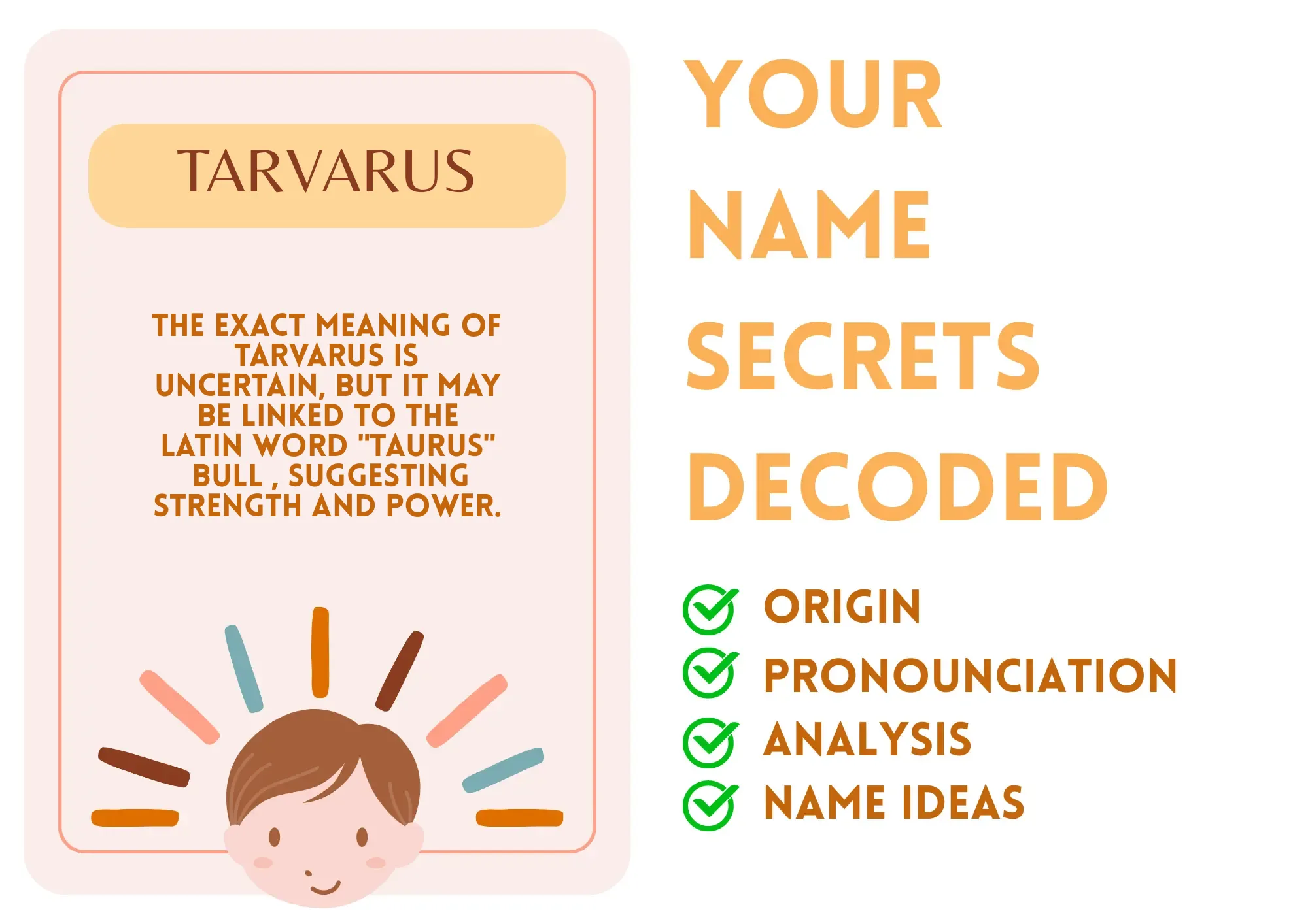 Just like the mighty bull linked to your name, Tarvarus signifies strength and determination. Imagine a superhero who never gives up—no matter the challenge ahead. That's how you meet life! Whether it's standing up for a friend or pushing through your hobbies, you carry a power that inspires others. Think about how you tackle tasks, no matter how tough; you show the kind of resilience that leaves everyone staring in awe!