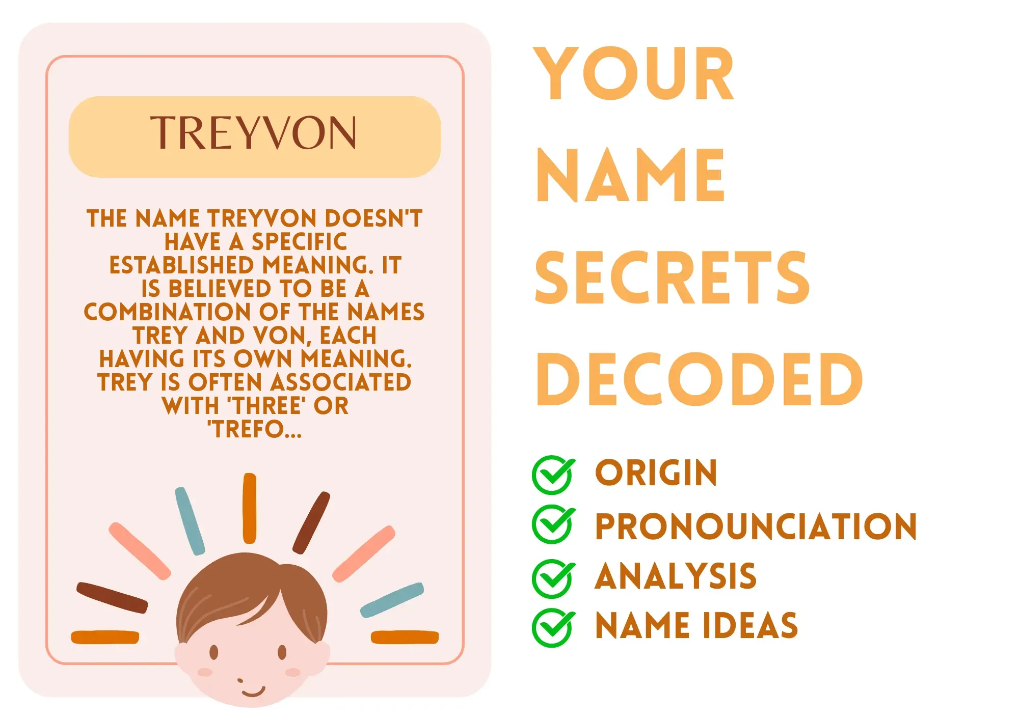 Hey there, friends! Have you ever met someone named Treyvon? If you have, you know there's something special about this name. It has a strong and unique sound, like the powerful rumble of thunder before a storm. The name Treyvon evokes thoughts of resilience and determination, serving as an exciting reminder that no matter the challenges, we can stand tall like a tree in the wind. Let’s unpack what it means to carry such an awesome name!