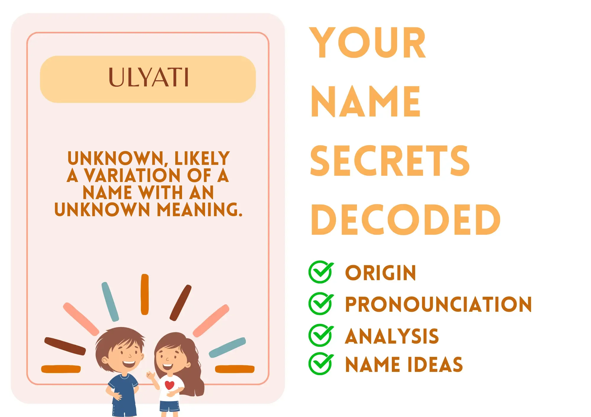 Origin: The origin of Ulyati is unknown. It could be a variation of a name from a specific culture or language, but further research is needed to determine its roots.