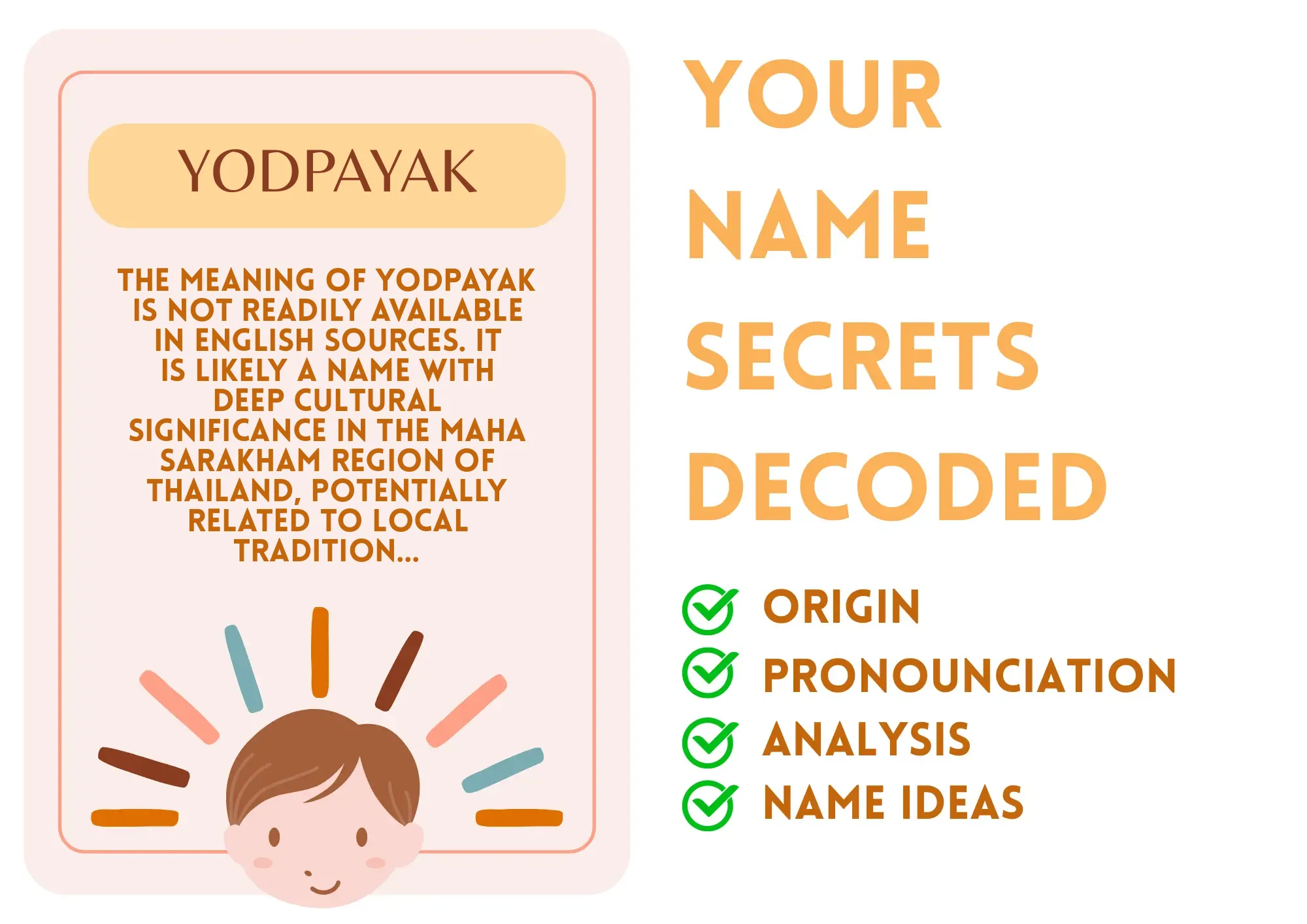 - Own Your Name: Celebrate the uniqueness of Yodpayak! Share its significance with friends and family to foster deeper connections.